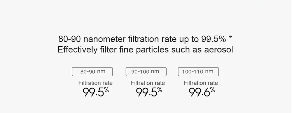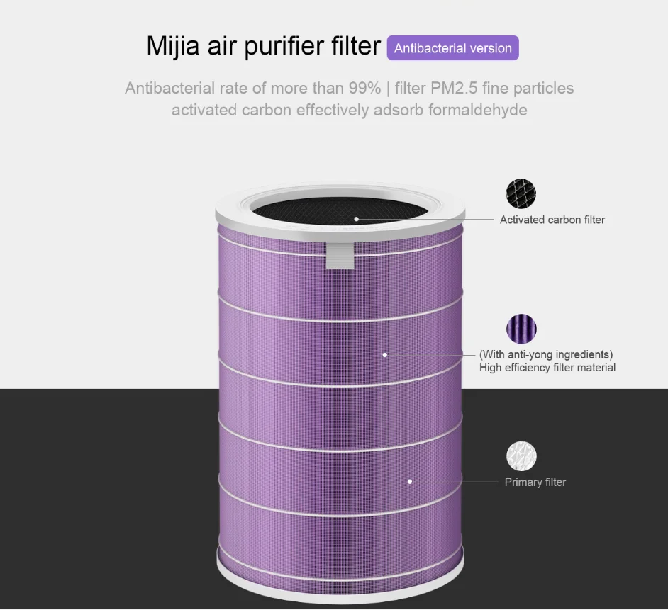80-90 нанометр скорость фильтрации до 99.5% * Эффективно фильтрует мелкие частицы, такие как аэрозоль Высокоэффективный фильтрующий материал, используемый в фильтрующем элементе воздухоочистителя Mijia в дополнение к усиленной версии формальдегида S1, имеет точность фильтрации как нанометры, который может эффективно фильтровать крошечные частицы, такие как бактерии и вирусы, подвешенные в воздухе.