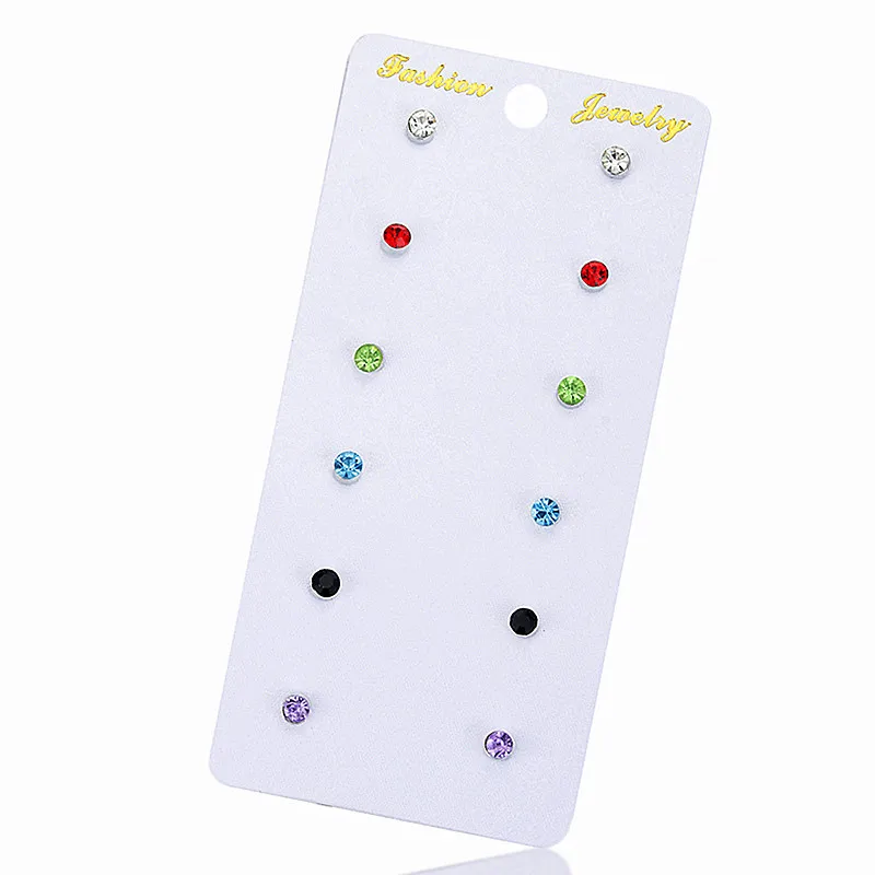 6 пар многоцветный камень кристалл серьги шпильки набор элегантные серьги Pin Комплект сережек для женщин девушки ювелирные изделия оптом