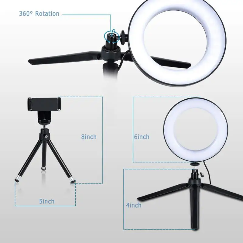 5. 【Питание от USB 】: питание от USB, наше кольцевое освещение может быть подключено к usb-портам, блоку питания, ноутбукам, компьютеру и т. д.