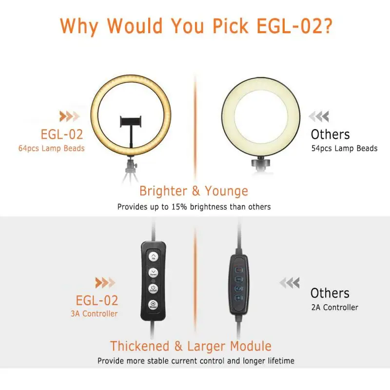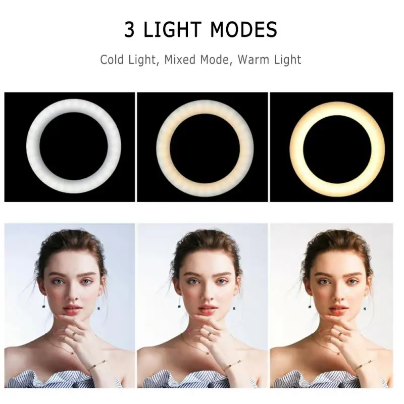 2. 【Принесите вам соответствующую яркость и цветовую температуру 】: когда вы обнаружите, что внутренняя яркость недостаточна, вы можете включить наш кольцевой свет с подставкой, И регулируйте яркость кольцевого света в соответствии с внутренней средой, так что свет на вашем лице может держать достаточно яркости. Яркость света может регулироваться до 11 уровней. Если вы хотите сделать цвет более мягким, вы можете настроить цвет при трех температурах (белый, теплый желтый и теплый белый).