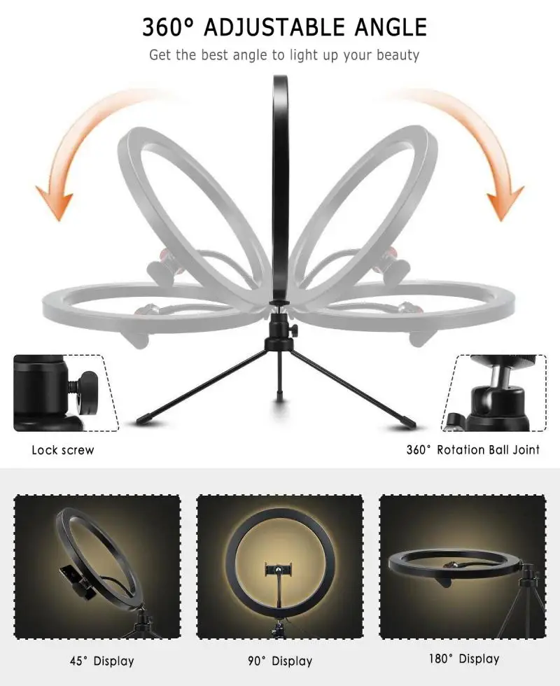 1. 【Более яркое видение 】: Этот набор кольцевых светильников может сделать Ваш визуальный мир более красивым и славным; Выглядеть лучше, когда вы видео с семьями и друзьями. С этим кольцом ваши изображения в Instagram и Facebook будут более красивыми и очаровательными. Это принесет вам хороший эффект освещения при записи видео на YouTube. Под освещением кольцевого светильника ваш макияж будет более красивым и щедрым.