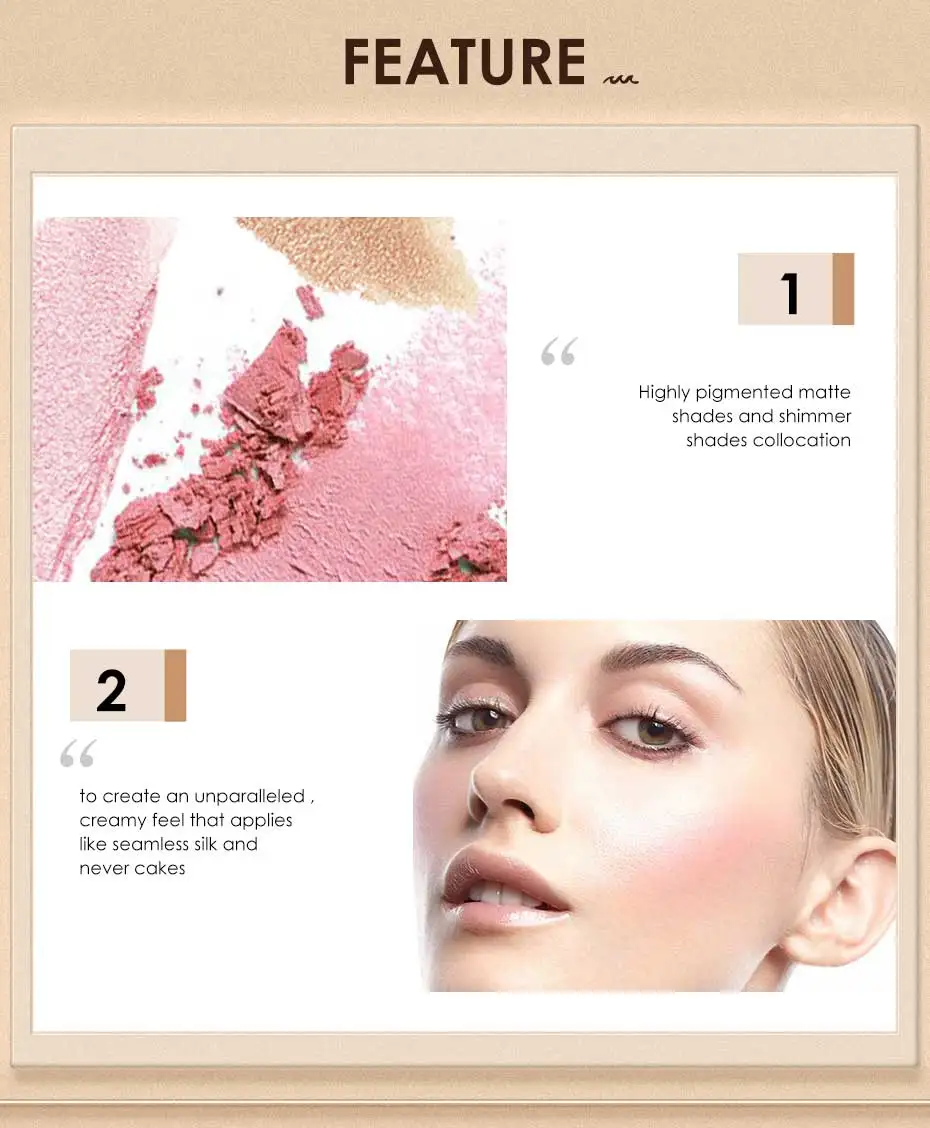 Особенности: -Румяна весь день и ночь с блеском настоящей любви. -Износостойкая, устойчивая к выцветанию и брызгам формула сохраняет ваши щеки до 16 часов. -Насыщенные пигментные, ударопрочные оттенки придают приятный цвет и тон коже. Компоненты: Талька, слюда, кремнезем, стеарат магния, диметикон, этилгексил пальмит, каприлия/каприк тиглицерид, CI42090,CI16035,CI19140,CI77492,CI77007,CI77891 Детали: Чистая Вес: 10,5g/37.OZ Упакованы в один пакет Здравоохранения licenece: GD.FDA29-XK-3276 Лицензия на производство: XK16-108 8553 Исполнительный стандарт: QB/T1976-2004 Осторожно! 1. Не использовать для других целей, кроме макияжа. 2. Избегать попадания прямого солнечного света или воздействия слишком высоких или слишком низких температур. 3. Хранить в недоступном для детей месте.