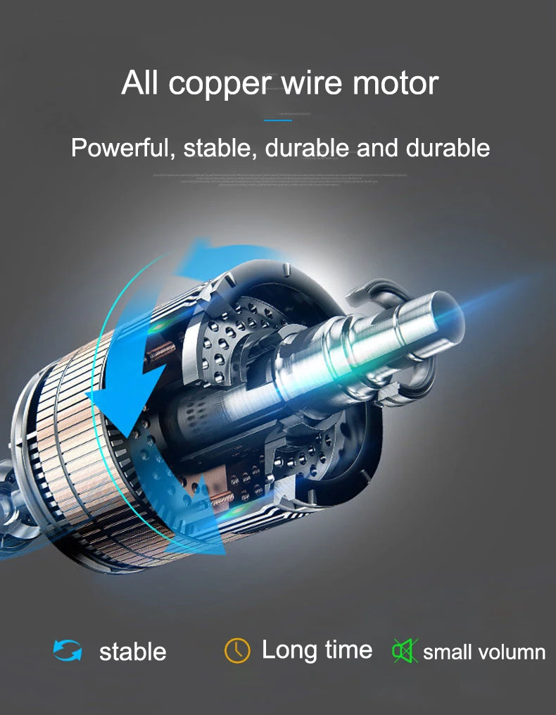 Двигатель из чистой меди, двигатель из чистой меди, изготовленный с полным медным двигателем, компрессор более стабильный и надежный для высокой эффективности и быстрого воздушного потока. Этот мощный двигатель предназначен для длительного использования