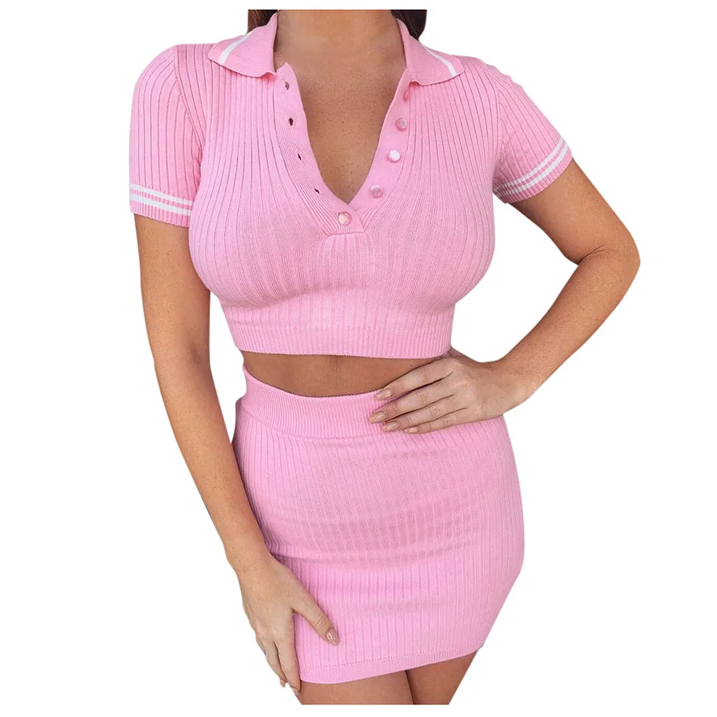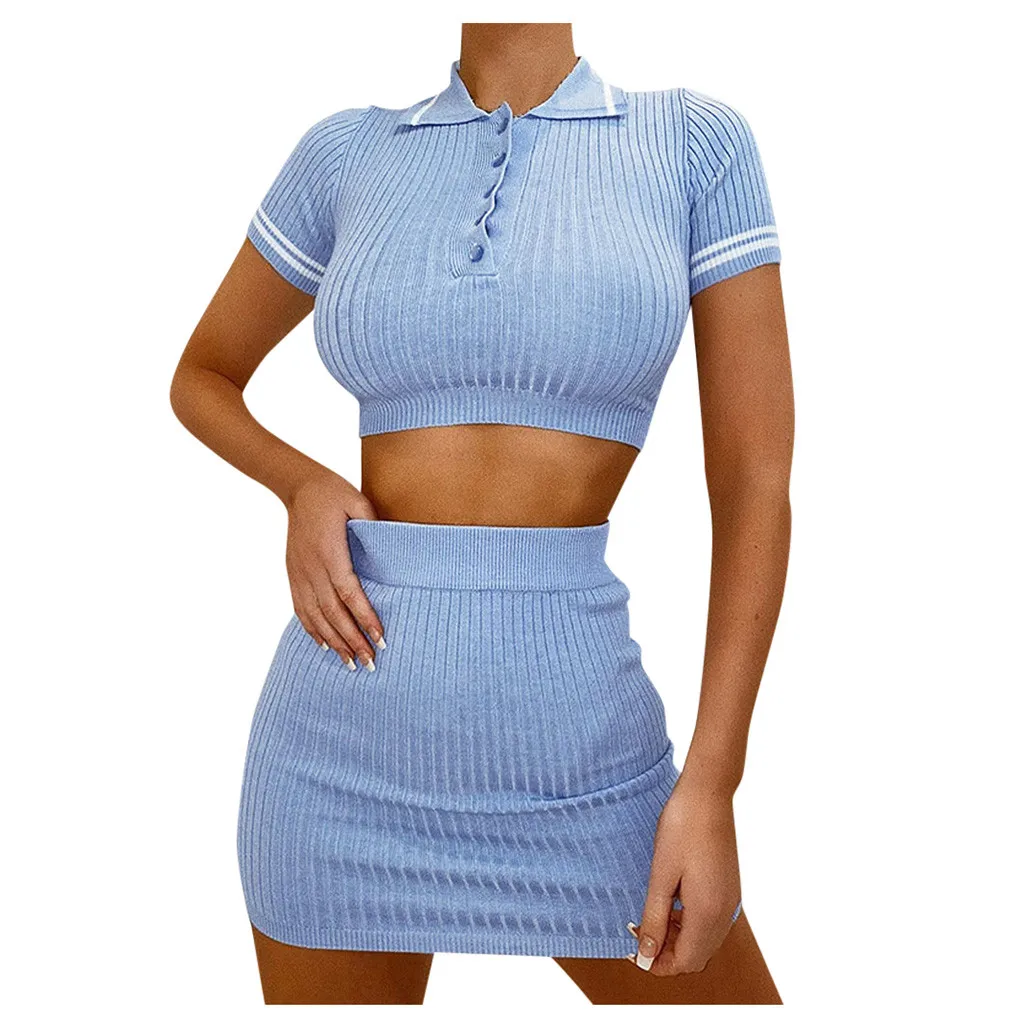 3.Отложной воротник, укороченный топ с короткими рукавамиМини-юбка,Трикотажный, однотонный, приталенный.Он имеет vОчень лестно обрезается на теле,Покажите свои изгибы с шармом.ATtractive стиль иВысокая талияДизайн, сделает вас очаровательным и сексуальным.