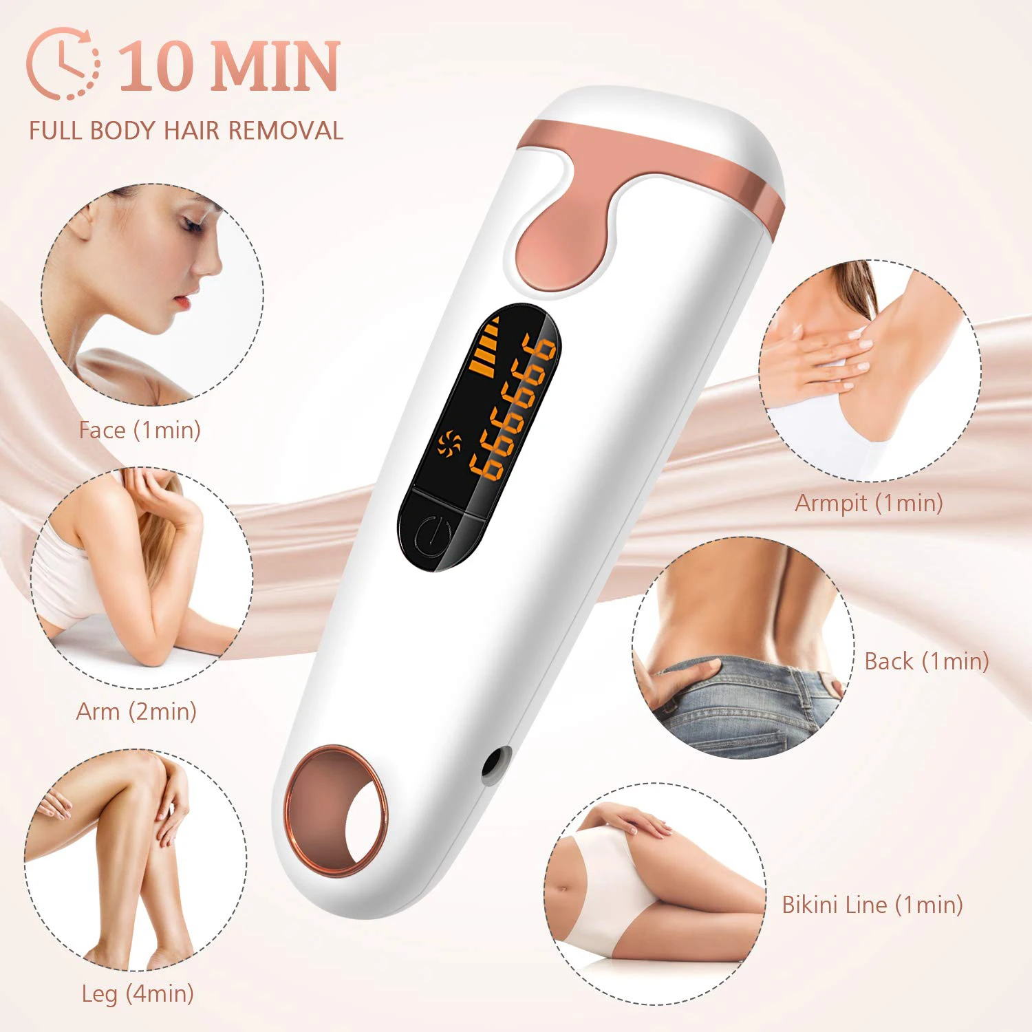 IPL Permanent Hair Removal System Destone Professional Painless Laser for Women & Men 999999 Flashes Electric Facial Body Hair Remover Device Use at Home Anytime (White Gold)