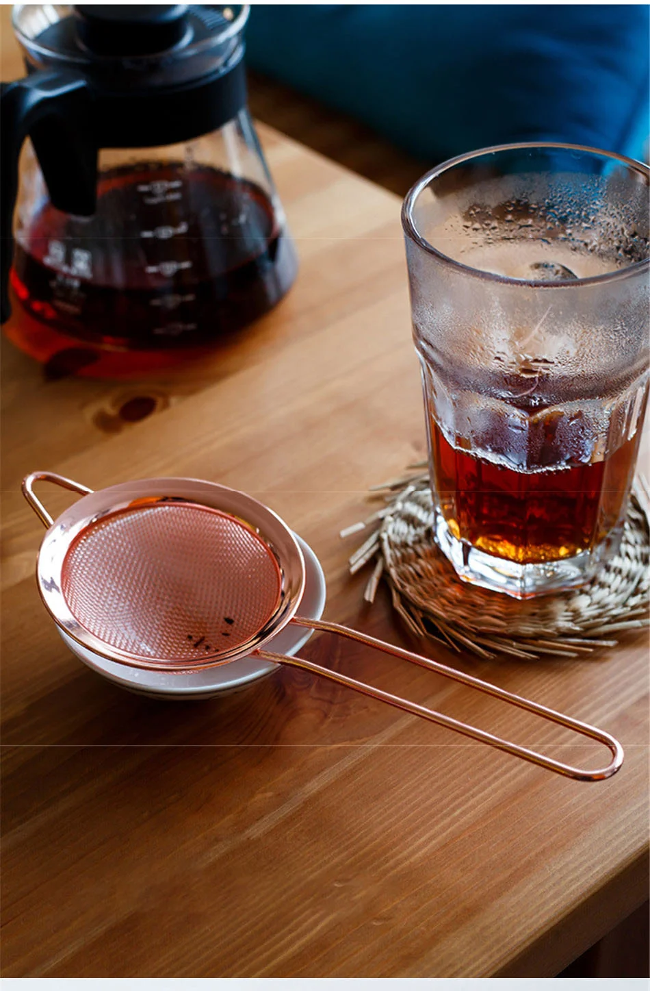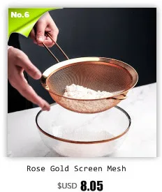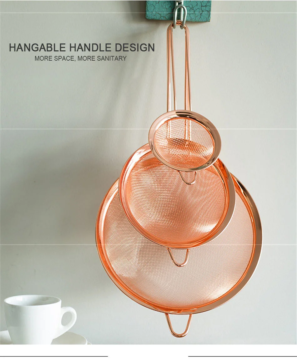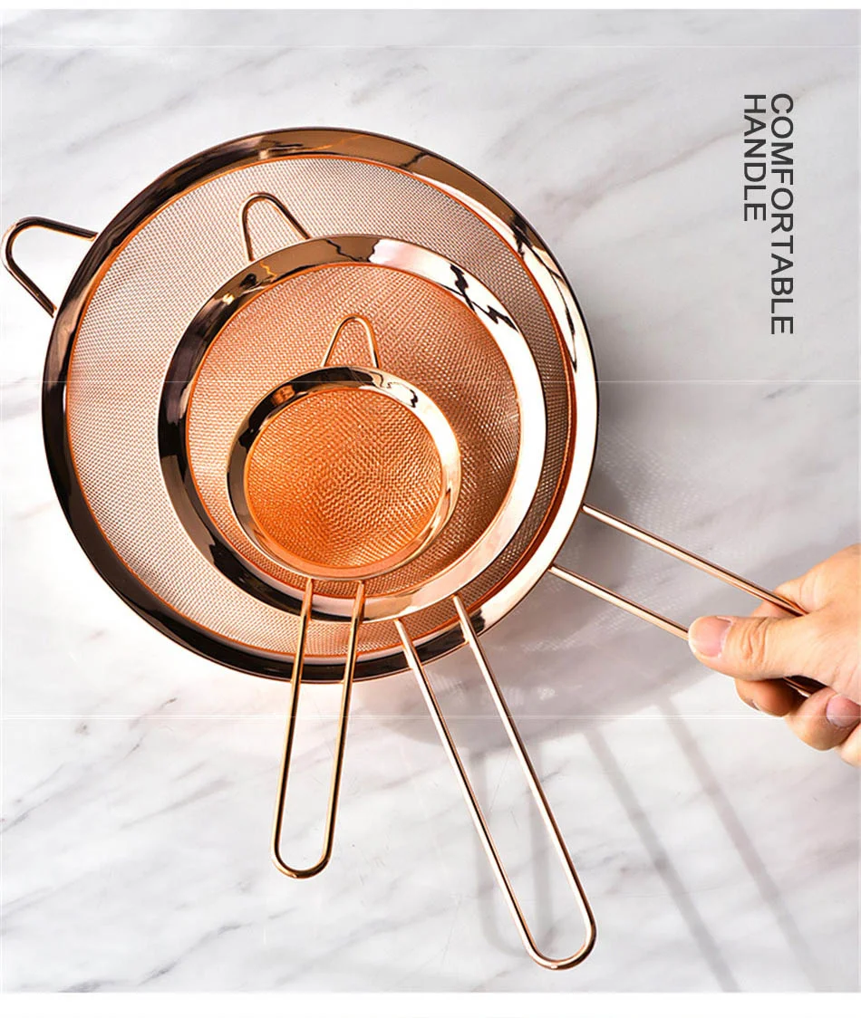 Stainless Steel Rose Gold Screen Mesh Long Handle Flour Seive Strainer Cooking Oil Strainer Colander Kitchen Filter Baking Tool 1PC