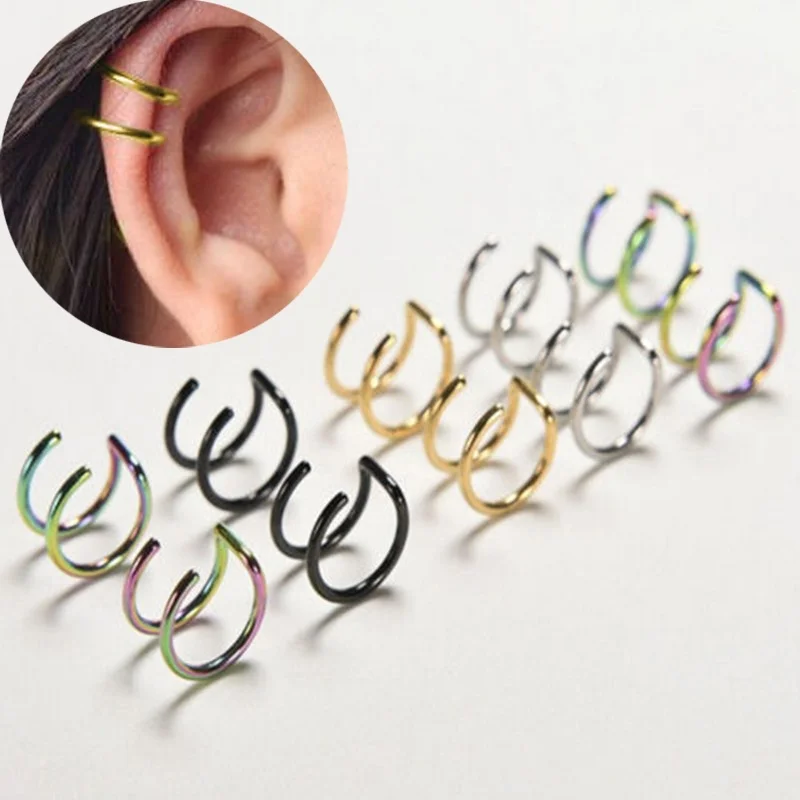 Подарок друзьям Особенности: не пирсинг для хрящевой части уха манжеты, Клипсы Серьги, простой дизайн с двойным кругом