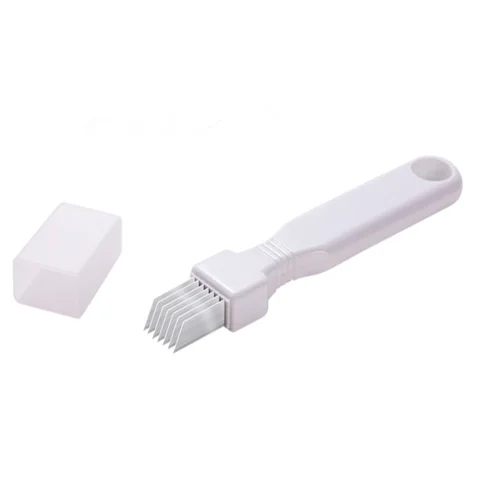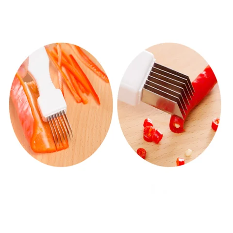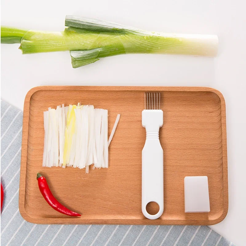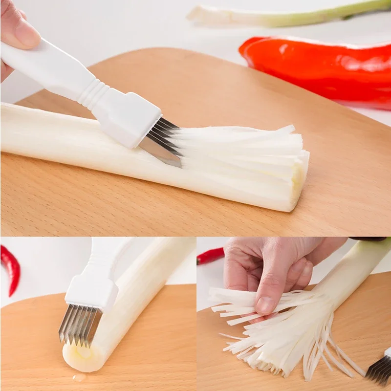 Есть 7 лезвий, шкрасный шелк, можно разрезать на секции: расстояние между каждым стальным ножом одинаковое, вы можете быстро и равномерно разрезать лук-шелк и лук-секции.