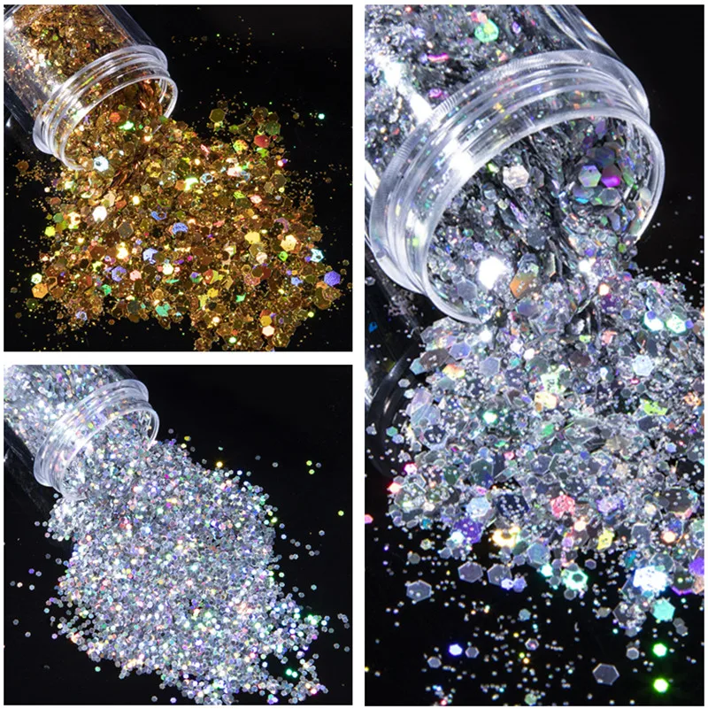 Лазер с блестками для ногтей lovkelly, 1 флакон, голографические золотые, серебро, пигмент для ногтей хлопьев, блестки, пайетки, Типсы для геля украшения для ногтей