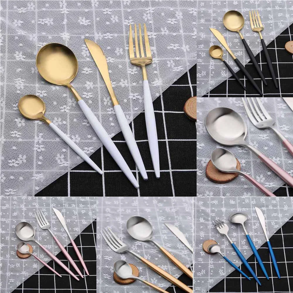 Португалия стиль столовые приборы из нержавеющей стали вилка ложка столовые приборы посуда 4 шт наборы