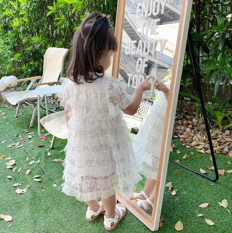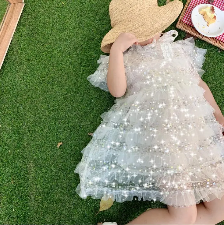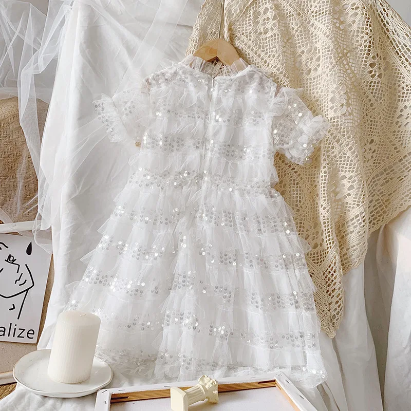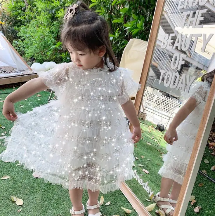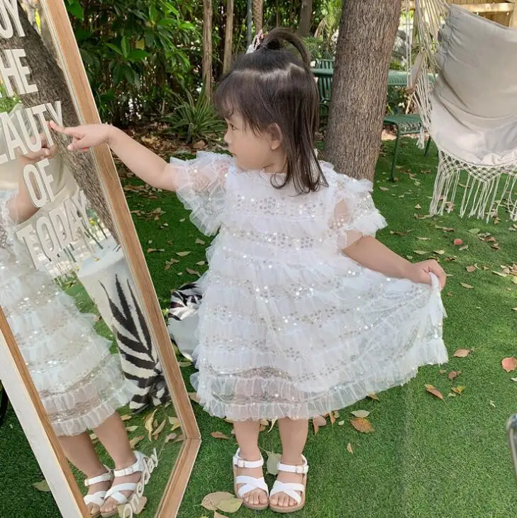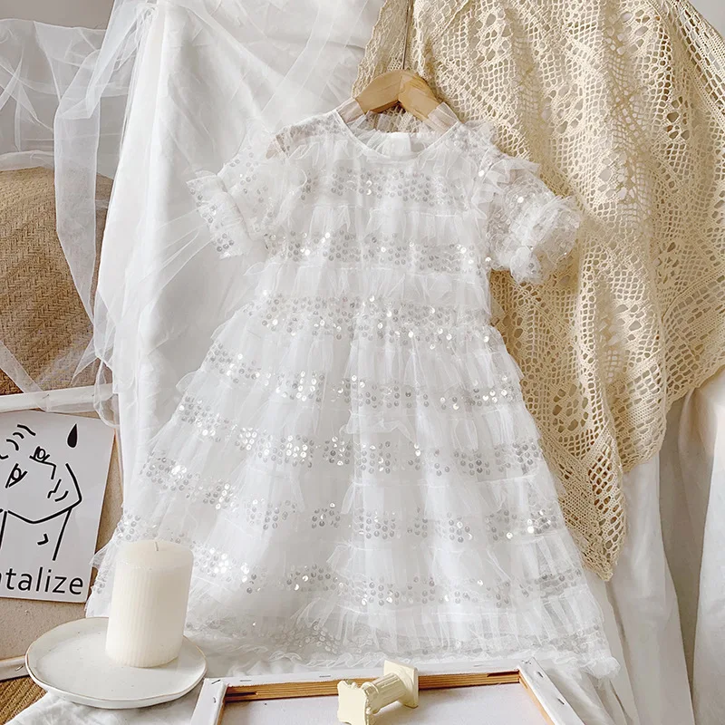 Детское кружевное платье принцессы, белое нарядное платье с блестками для девочек, лето 2020, Новое поступление, детская одежда, платье для девочек, детская одежда, платье для девочек