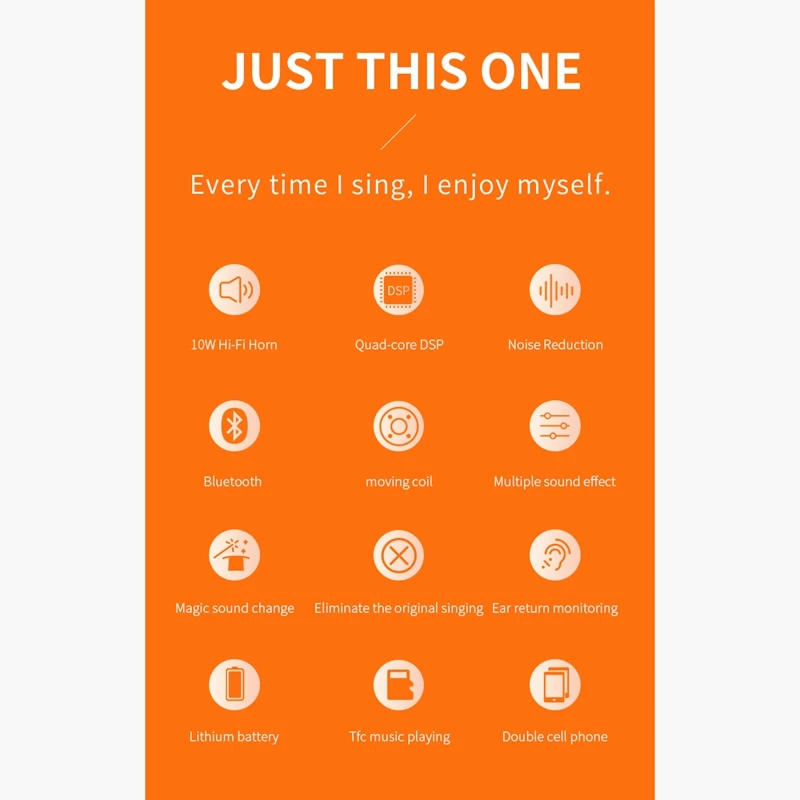 1. Новый опыт караоке, беспроводное соединение bluetooth, встроенная звуковая карта DSP, обработка звукового эффекта, отличное качество звука!