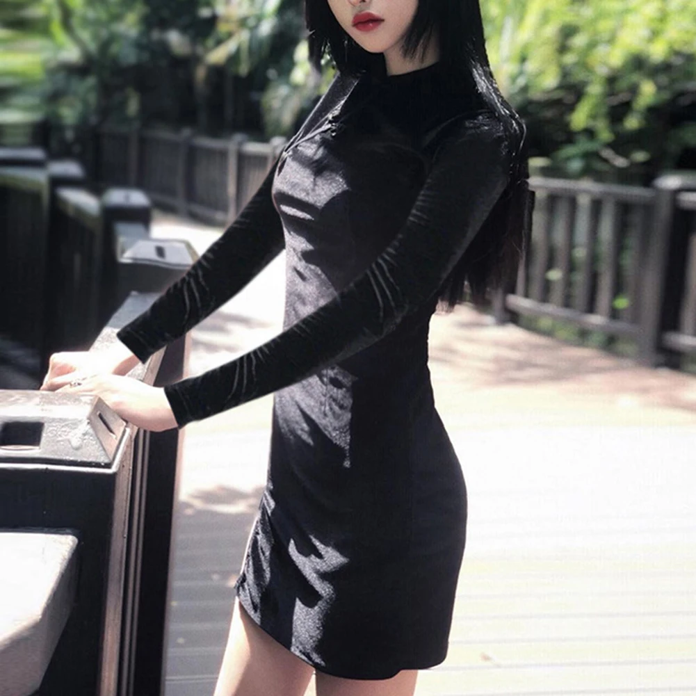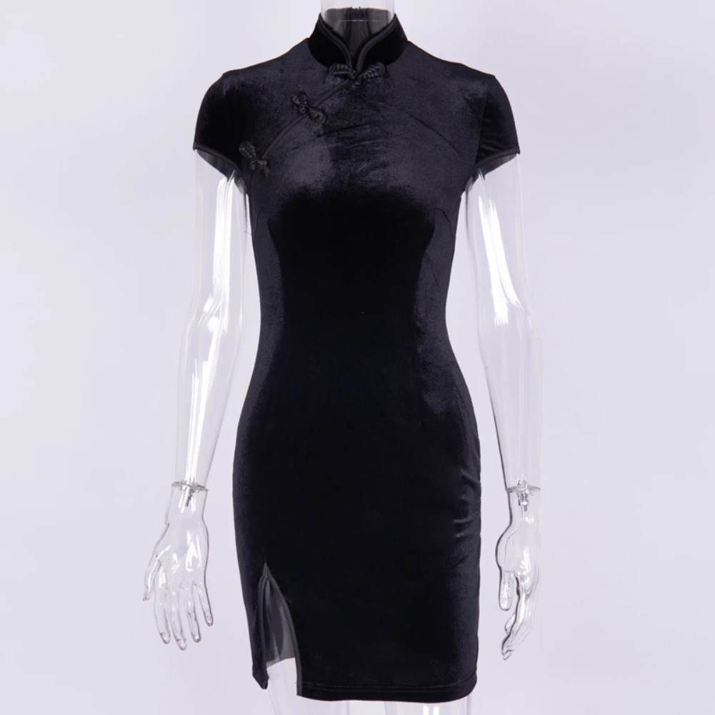Китайское бархатное платье Ципао, женское облегающее винтажное ретро платье с коротким/длинным рукавом, мини традиционное женское элегантное платье Ципао