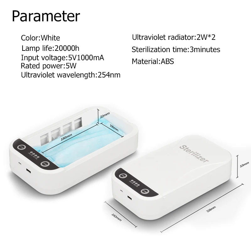 Подходит для стерилизации личных вещей, таких как ключи/Мобильные телефоны/зубные щетки/очки/Ювелирные изделия/маски. 5 минут эффективная и быстрая Антивирусная стерилизация может достигать более 99%.