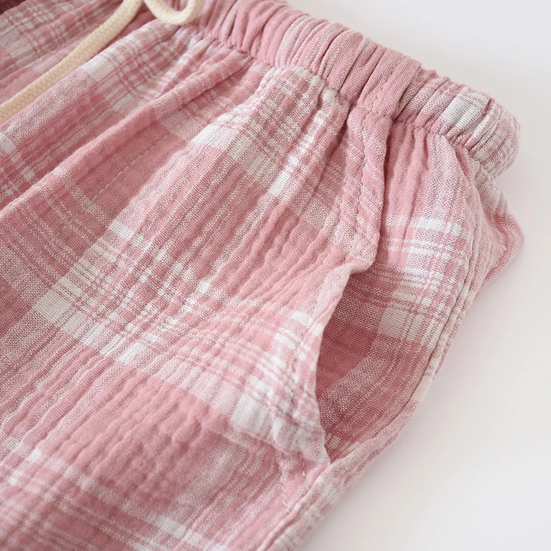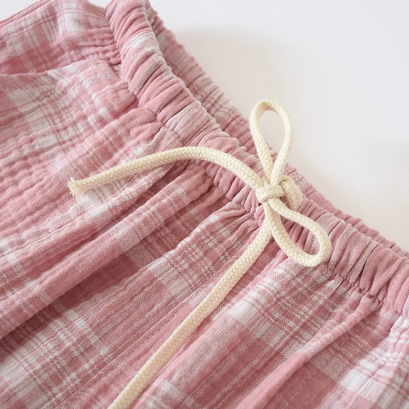 Летние женские пижамы, 100% хлопковые брюки, мужские и женские клетчатые брюки, свободные повседневные штаны для сна, пижамы, пижамы
