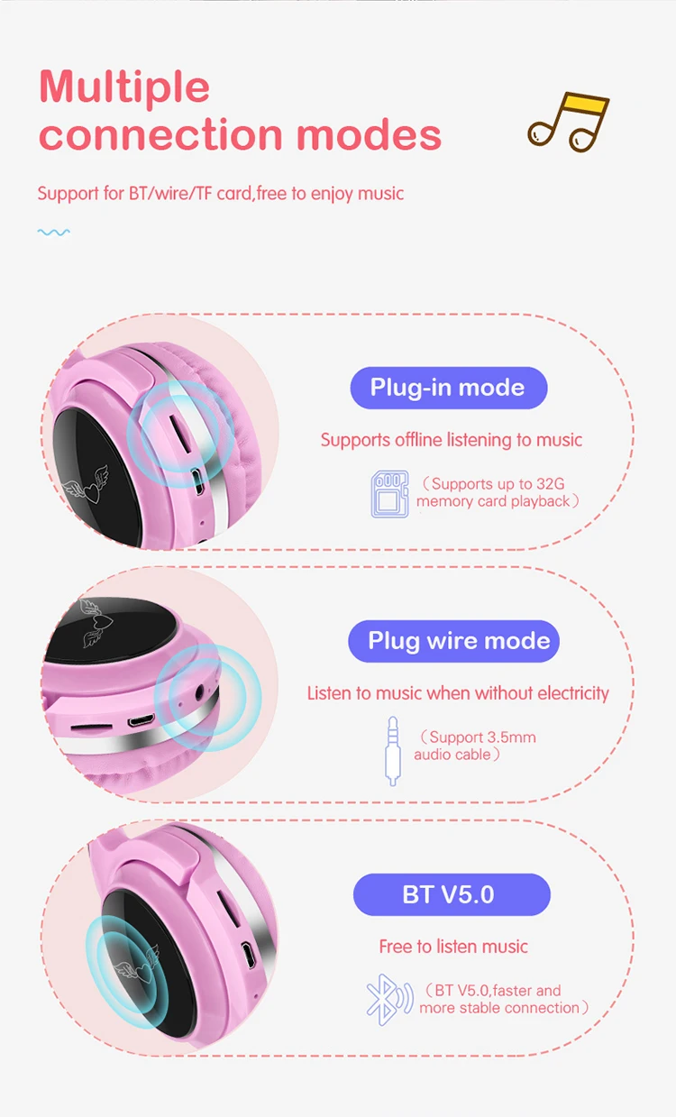Милые крылья ангела для детей, Bluetooth 5,0, гарнитура, 7 видов цветов, светодиодные наушники, поддержка sd-карты, аудио кабель, наушники для мальчиков и девочек, подарок, Детская гарнитура