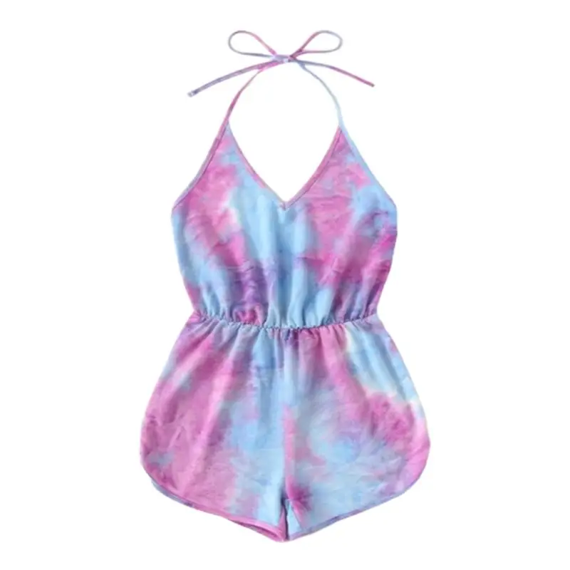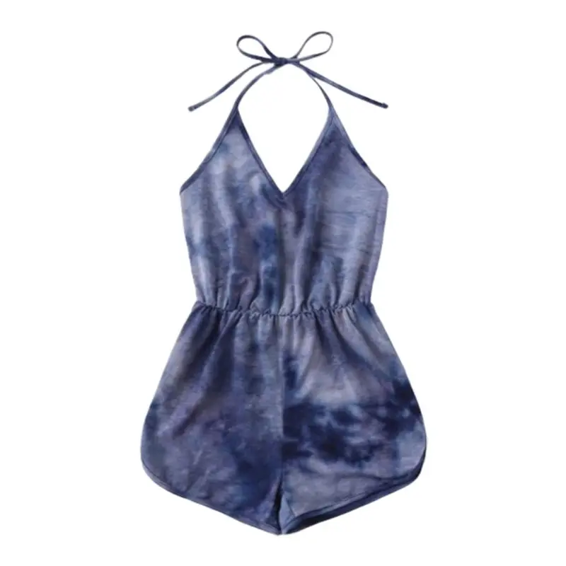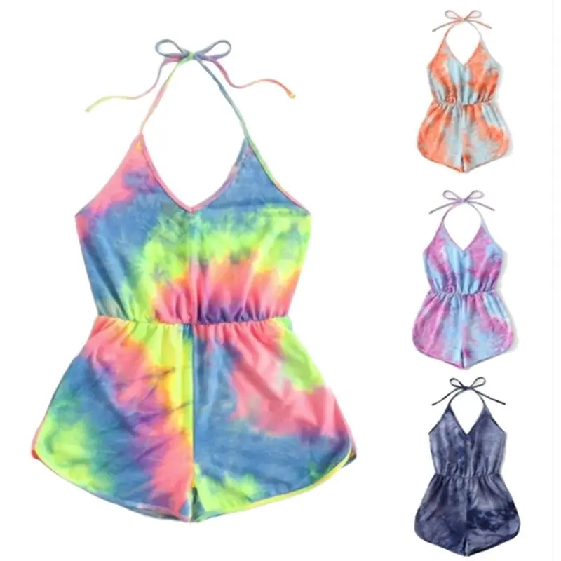 Женский сексуальный комбинезон с v-образным вырезом и открытой спиной, Радужный градиент, галстук-краска, принт, шорты без рукавов, цельный пляжный комбинезон