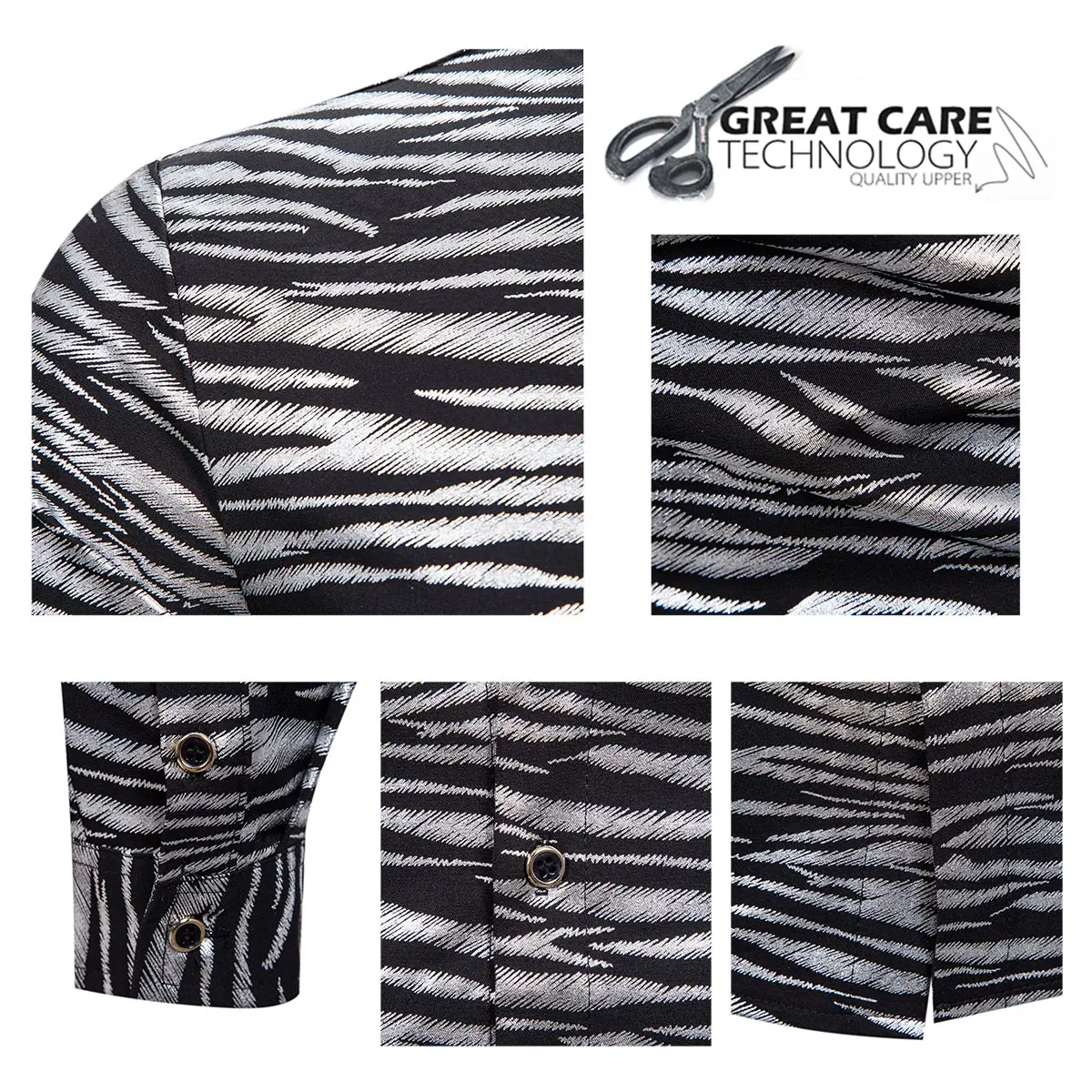 Button closure Hand Wash MATERIAL: Polyester - High quality smooth fabric makes you feel comfortable and breathable when wearing; Healthy dyeing guarantees the fastness of the shirts. CARE INSTRUCTION: Hand wash recommended; Avoid prolonged exposure under the sunlight STYLE & DESIGN: Slim fit button-closure shirt featuring point collar and long sleeves with two sleeve buttons. The exquisite buttons and special tone-to-tone embroidery design show your distinctive taste and elegance. OCCASION: Suitable for Party, Festival, Prom, Wedding, Daily Wear, Dates, Event, Homecoming, Banquet, Business, Work, etc. You can wear it in Spring, Autumn, and wear inside in Winter. PACKAGE INCLUDES: 1*Shirt [Items are slightly smaller than expected. If you have any questions about size,please feel free to contact us.