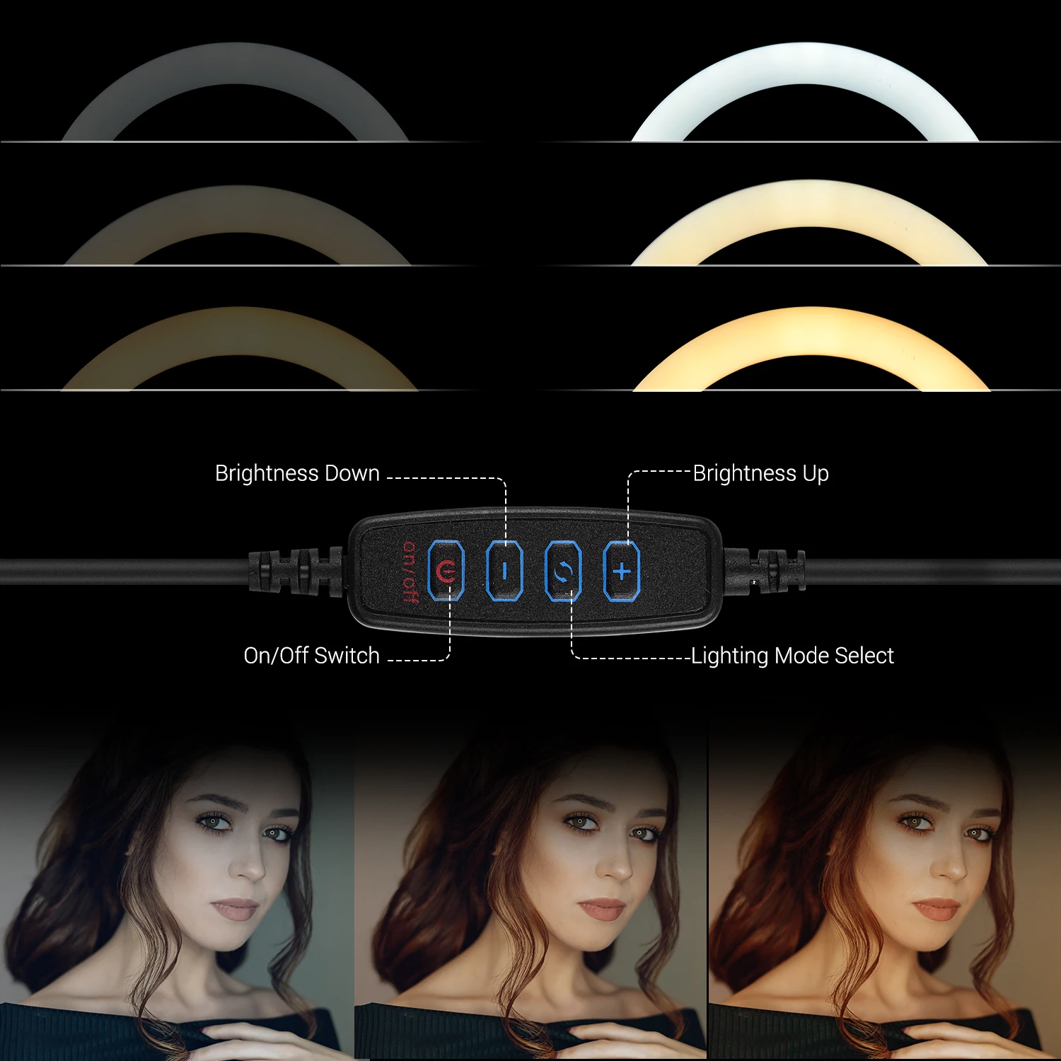 3 режима освещения (теплый свет/естественный свет/Холодный свет) и 10 уровней регулируемой яркости удовлетворяют все ваши потребности различных световых эффектов.