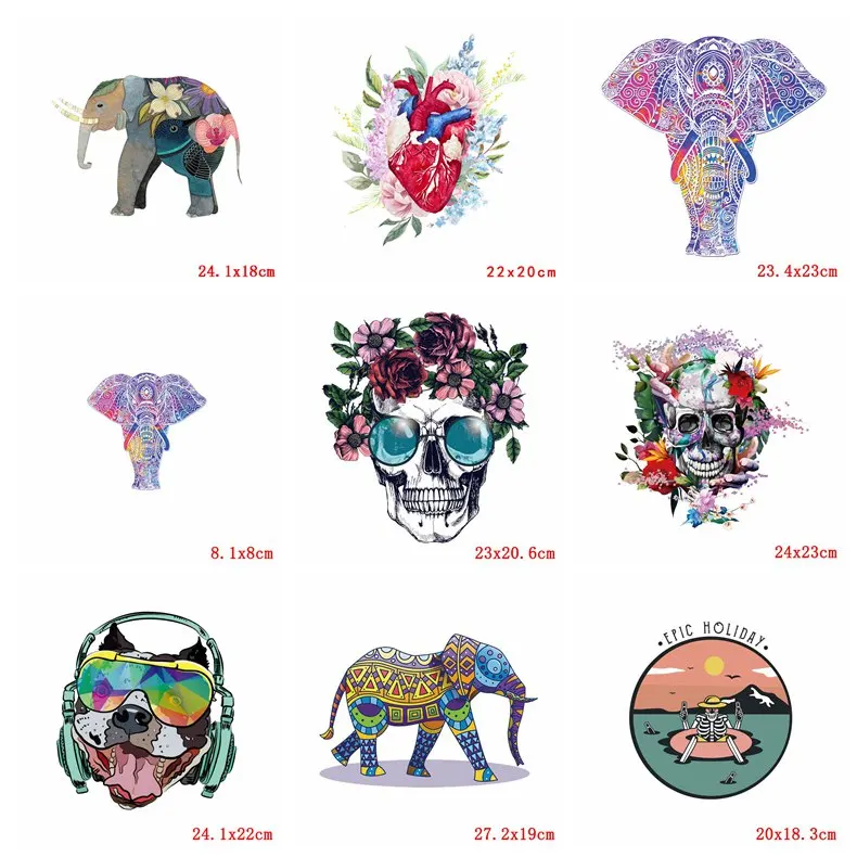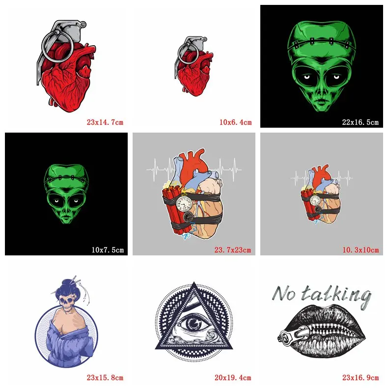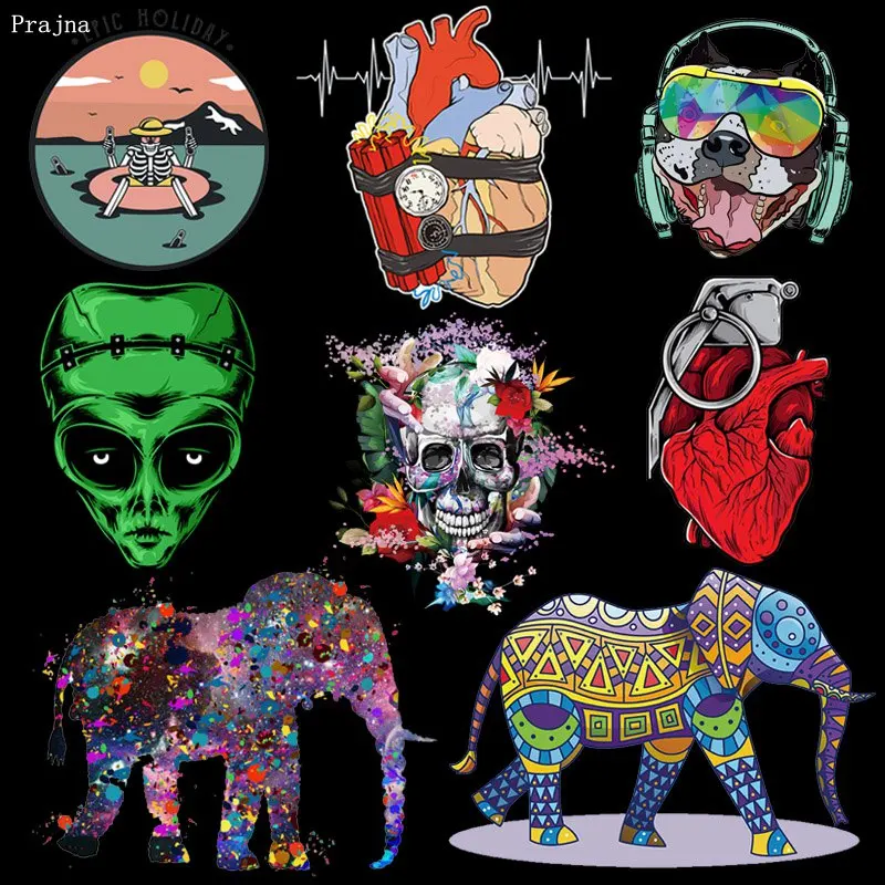 Prajna череп патчи панк слон Железный На переноске винил термотрансферный красный сердце гладильная наклейки для футболки летний стиль