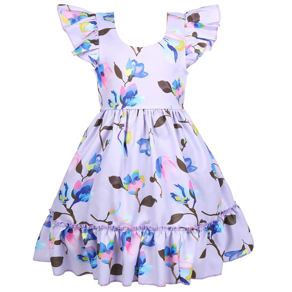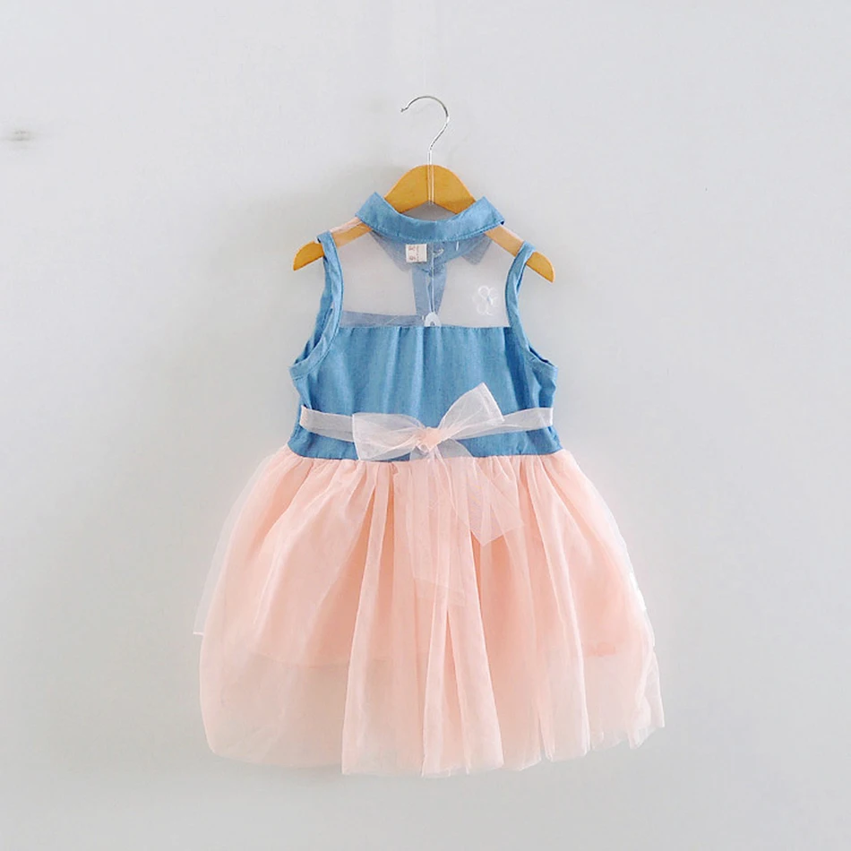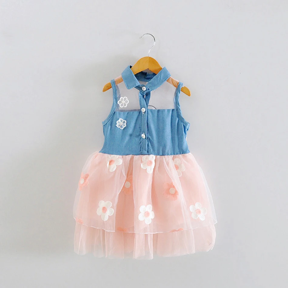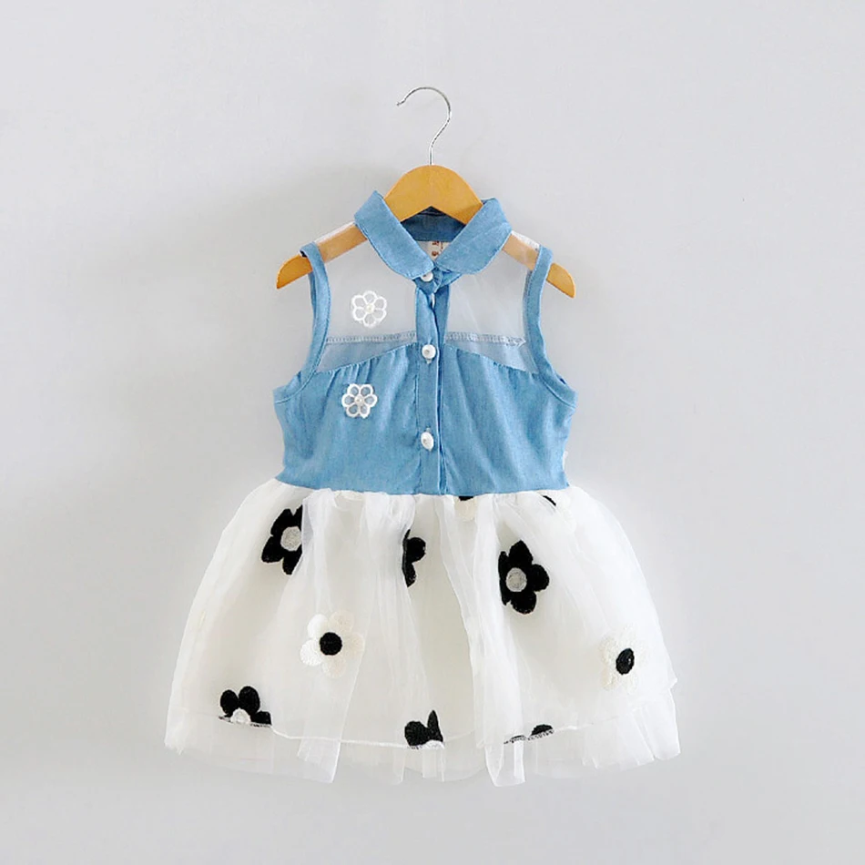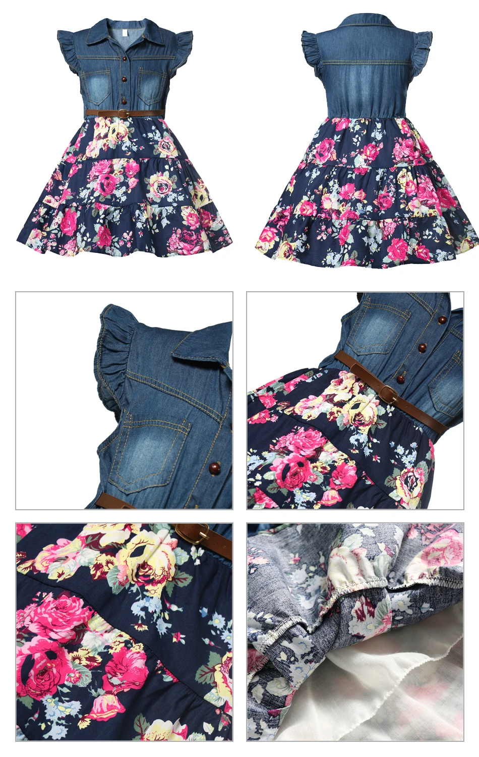 Наименование: летнее джинсовое платье с цветочным рисунком для девочек; Вечерние платья с поясом; Детская повседневная одежда с короткими рукавами; Модная одежда для маленьких девочек