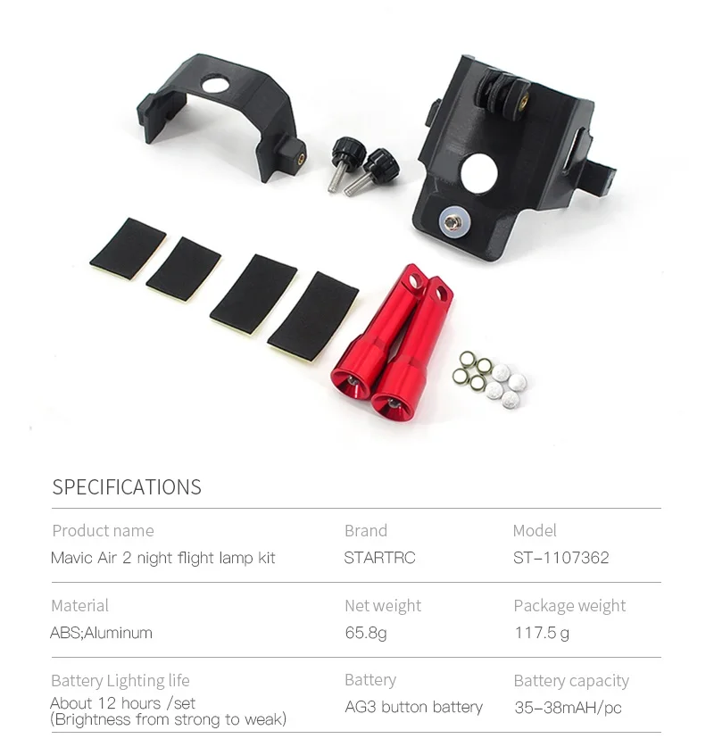 -Делает fliqht более безопасным и надежным, когда летает Дрон ночью, он играет роль ночной идентификации и увеличивает удовольствие от ночного полета