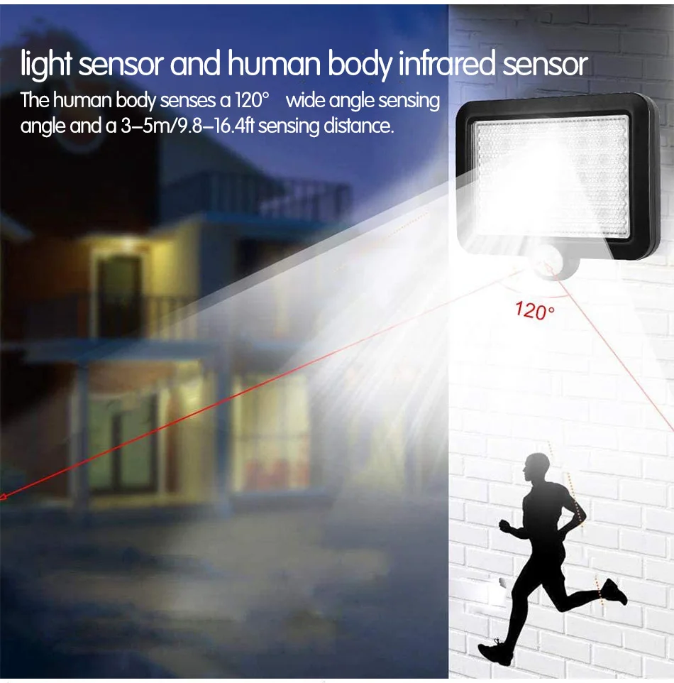 3. В дневное время светильник не включен, только в ночное время Включите переключатель, когда датчик обнаруживает, что тело человека может получить светильник высокой яркости.