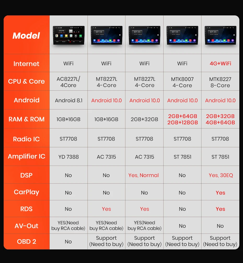 Устройство оснащено Навигатором, воспроизведением музыки, функцией парковки и т. д. для подключения к Интернету версии Wi-Fi должны служить вашим смартфоном в качестве точки доступа. Для владельцев автомобилей, которые часто используют Интернет во время путешествия, мы рекомендуем купить версии 4G.