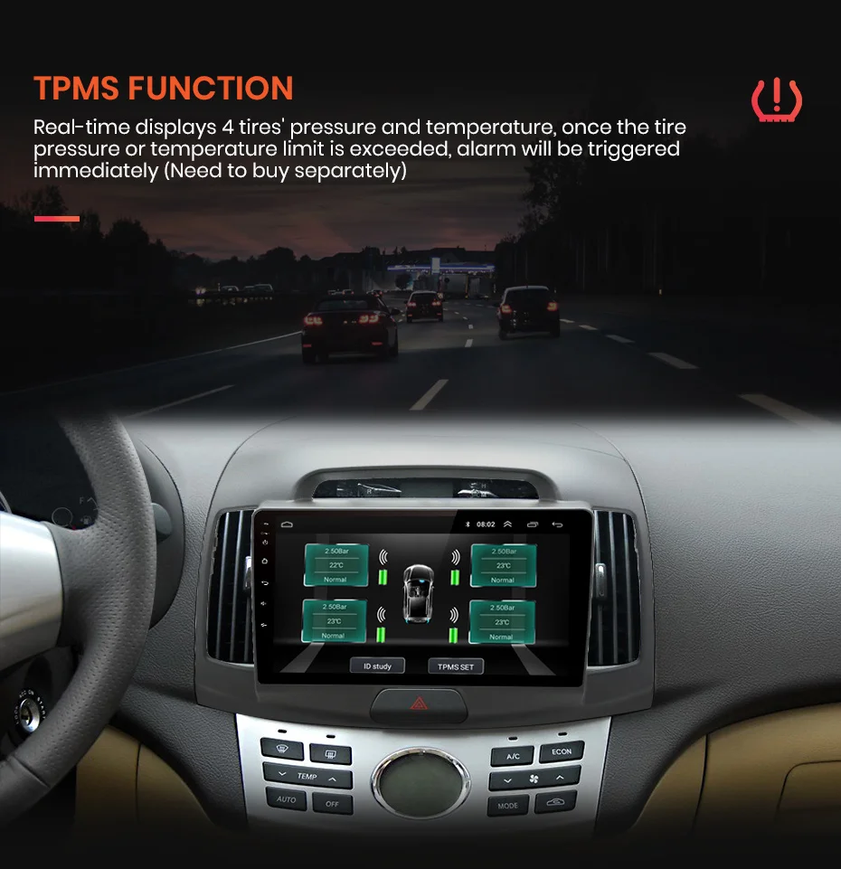 Отображает 4 давления и температуры в режиме реального времени. Как только давление или температура в шинах будут необычными, сразу же будет сигнал тревоги.