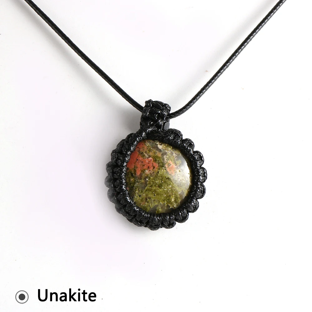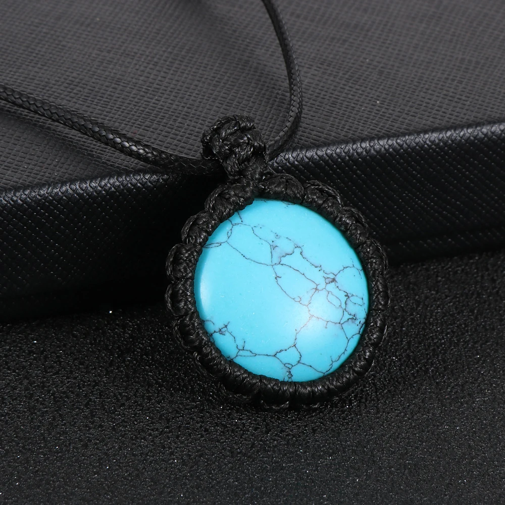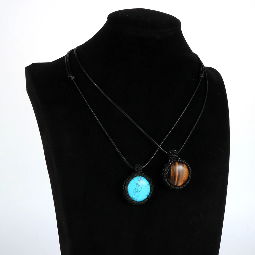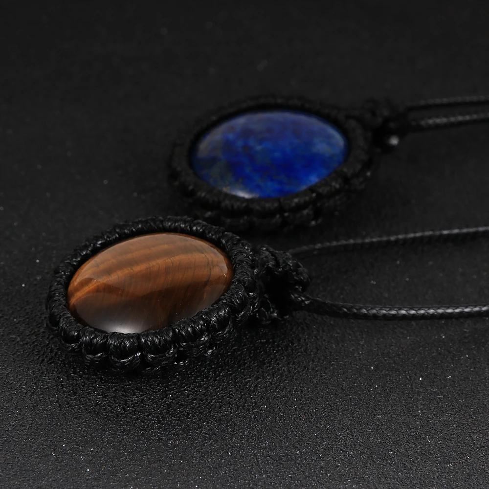 Артикул:Женское и мужское ожерелье из натурального камня 25 мм с круговой подвеской с кристаллами тигровый глаз, лазурит, Вощеная Веревка, плетеная обертка, окантовка, очаровательное ювелирное изделие