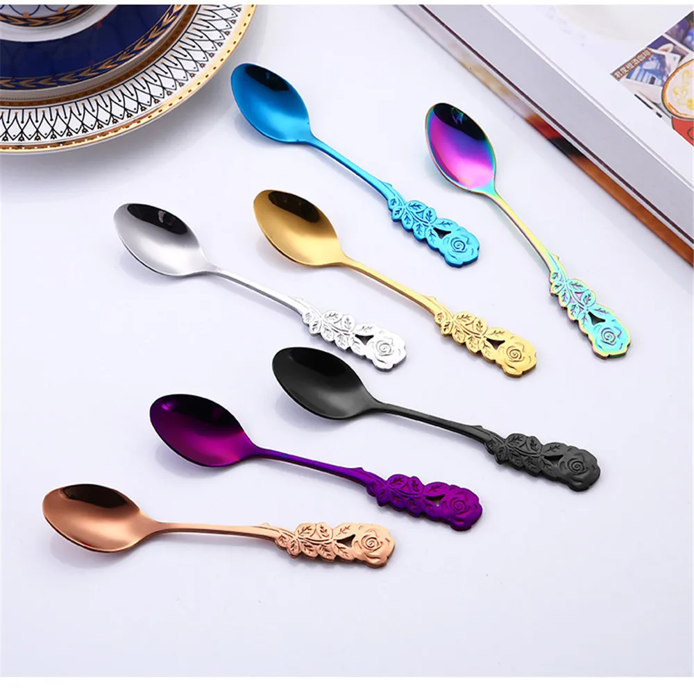 Нержавеющая сталь листья ложки Радуга кофе и чай Ложка Столовые приборы питьевой Инструменты