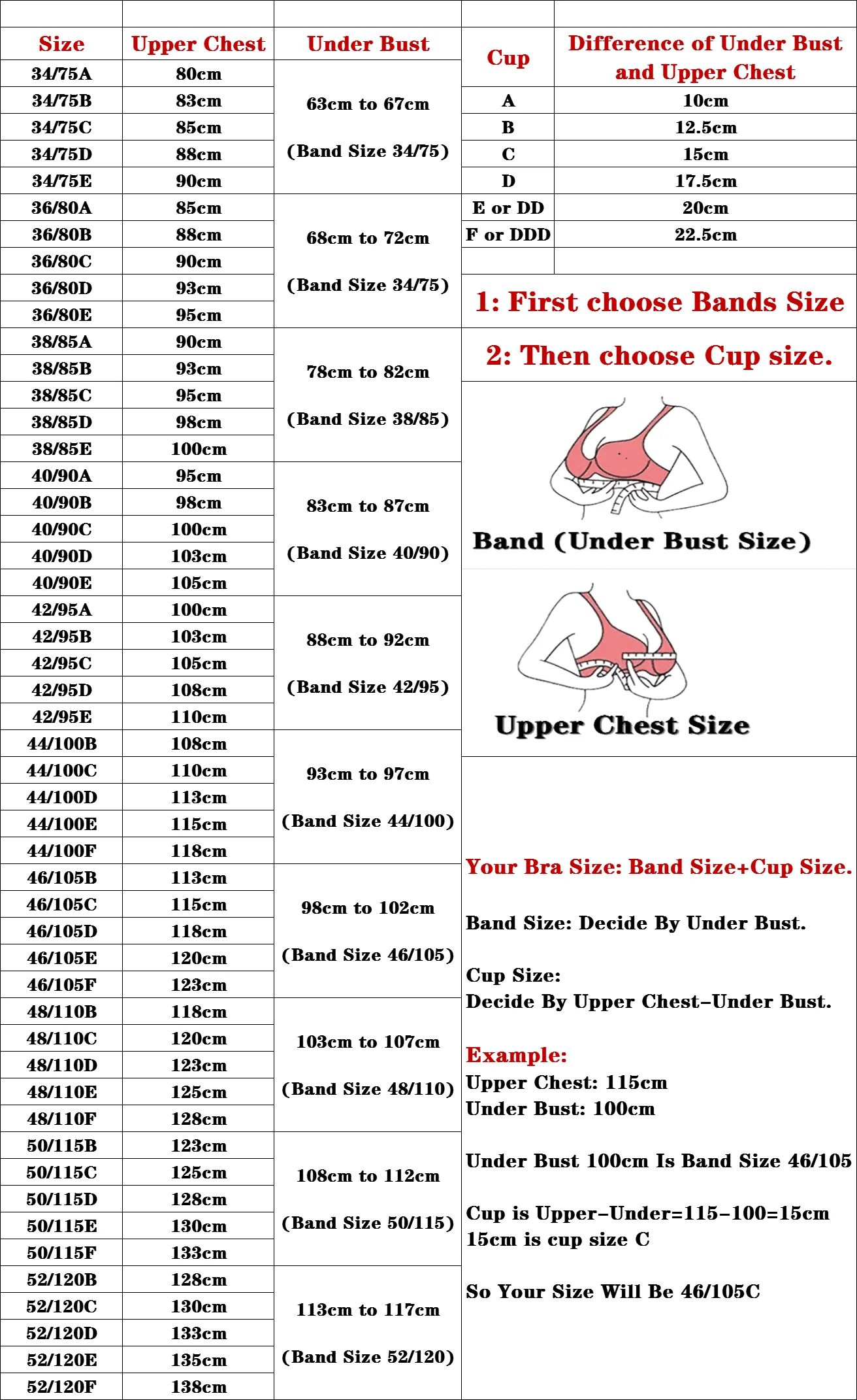 Размер: 34 = 75 36 = 80 38 = 85 40 = 90 42 = 95 44 = 100 46 = 105 48 = 110 50 = 115 52 = 120