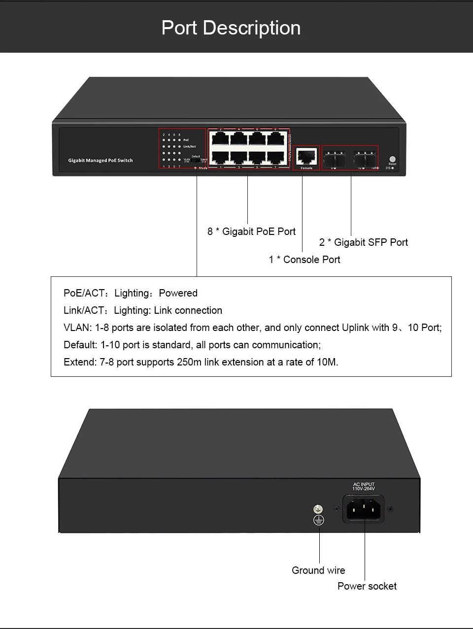1. Гигабитный управляемый коммутатор POE-это зеленый энергосберегающий коммутатор POE. 2. Он принимает высококачественный и высокоскоростной сетевой IC и самый стабильный POE-чип. 3. Порт POE поддерживает стандарт IEEE802.3af/at. 4. Эта модель может обеспечить бесшовное соединение для 10/100/1000M Ethernet, и порт питания POE может автоматически обнаруживать и заряжать питание устройств, которые соответствуют стандартам theIEEE802.3af/at. 5. Устройства, не связанные с POE, работают в принудительном режиме и передают только данные.