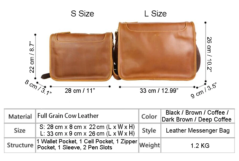 Особенности: -Он был сделан из отборной кожи с натуральным лицевым покрытием. -Стильный и особенный -Большой объем для повседневного использования -Может включать iPad, книги, документы и т. Д. -Прибл. Размер S: 28 см (Д) X 22 см (В) X 8 см (Ш) L: 33 см (Д) X 26 см (В) X 9 см (Ш)