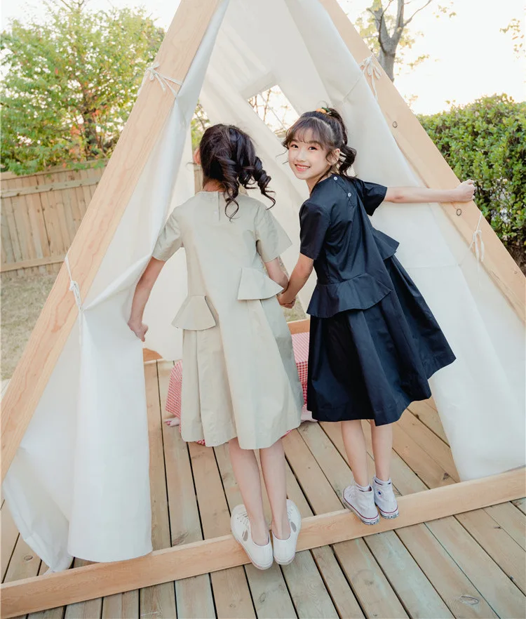 Летнее Повседневное платье с оборками и баской для девочек-подростков 4, 6, 8, 10, 12, 14 лет Детские хлопковые однотонные платья для девочек