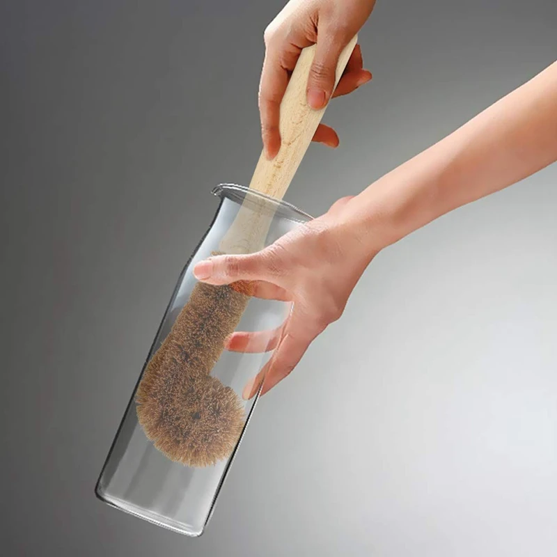 Практичный дизайн кухонной щетки-поставляется в 4 формах, круглая форма легко доходит до углов и щелей с хорошей щетиной из волокна, жесткой и гибкой для обработки тяжелой работы по очистке; изогнутая головка щетки может быть глубоко внутри бутылки для очистки, лучшего эффекта очистки, А также решает проблему, что пластиковые щетинки легко вызывают брызги пятен.