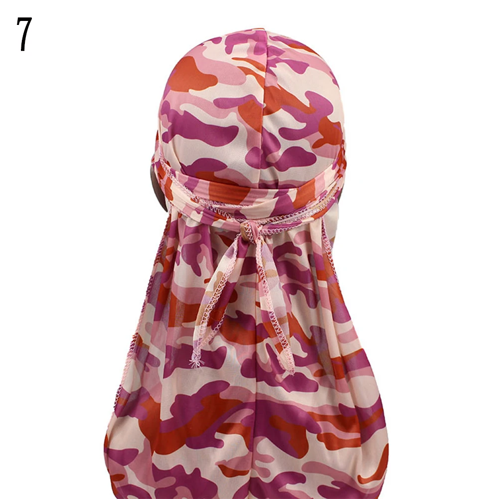 Женский и мужской длинный хвост Камуфляжный шелковистый тюрбан, головной убор, бандана, головной убор