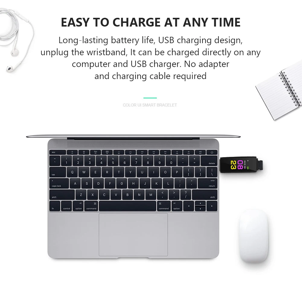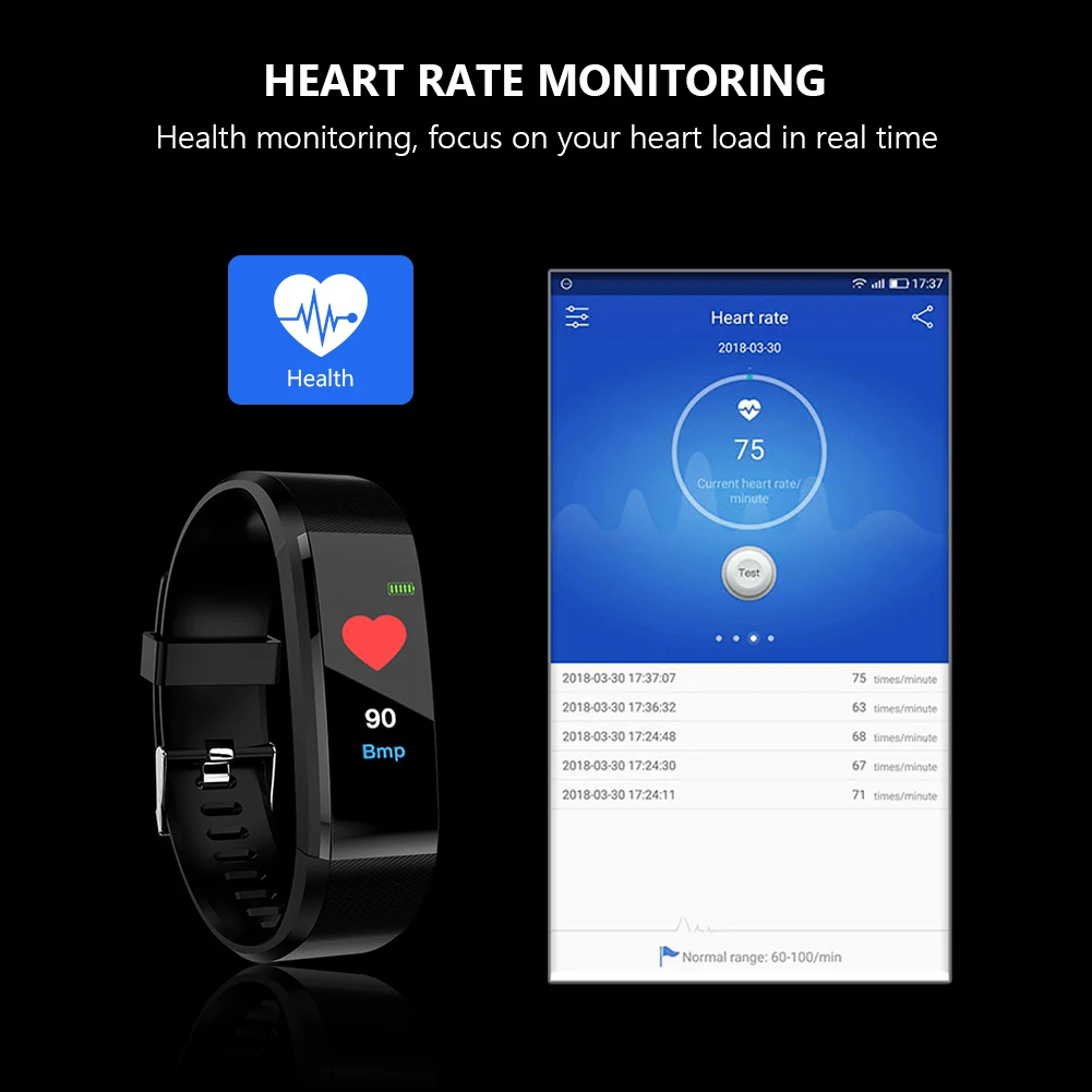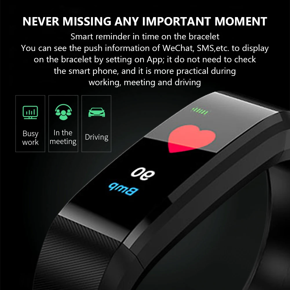 Отображение параметров здоровья, этот умный браслет может четко отображать время, дату, шаги, расстояние и калории. Немедленно сообщите свои спортивные данные