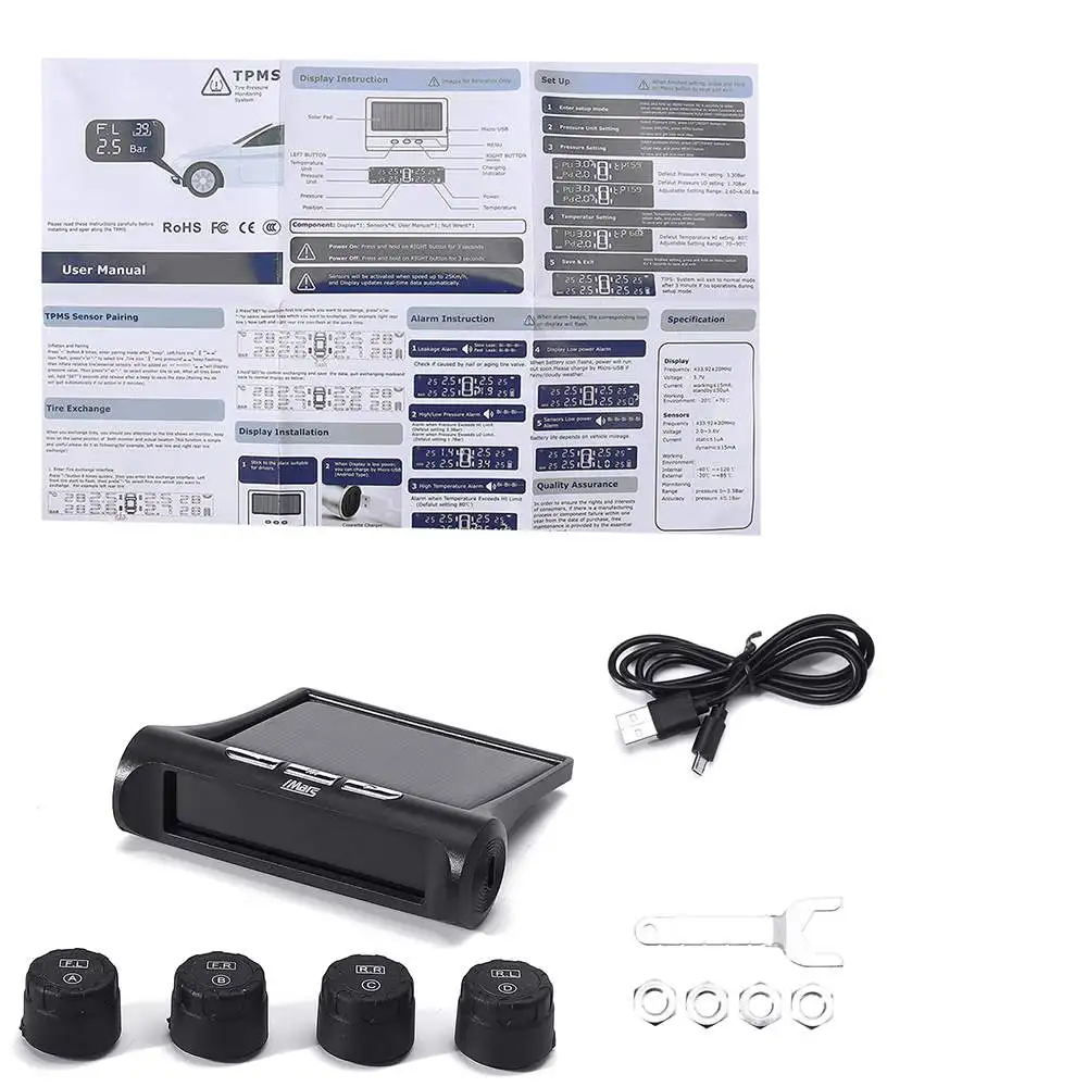 4 беспроводных внешних датчика, легкая установка и получение сигнала в реальном времени. Данные давления и температуры может быть включен (по умолчанию 1,5-6,0 бар/22- 87 фунтов на квадратный дюйм), при надавливании единица измерения-сантиметр фунтов/кв. дюйм/бар и единицы измерения температуры: C/F по выбору.