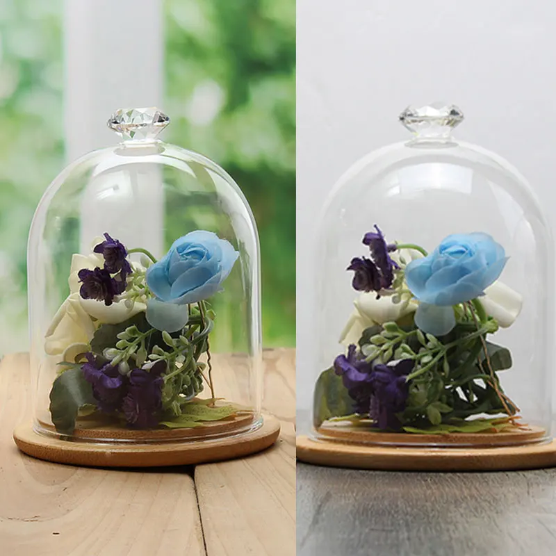 Note: Glass Display Jar and Wooden Base Only. Plant and Flower Not included