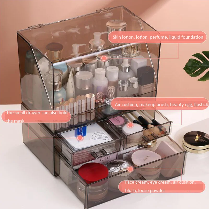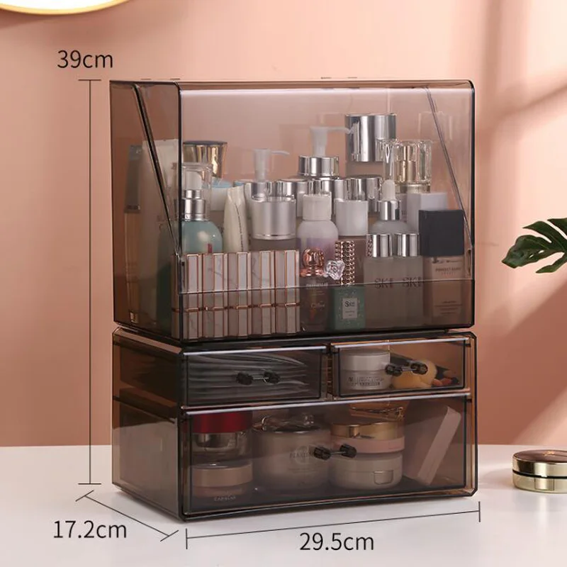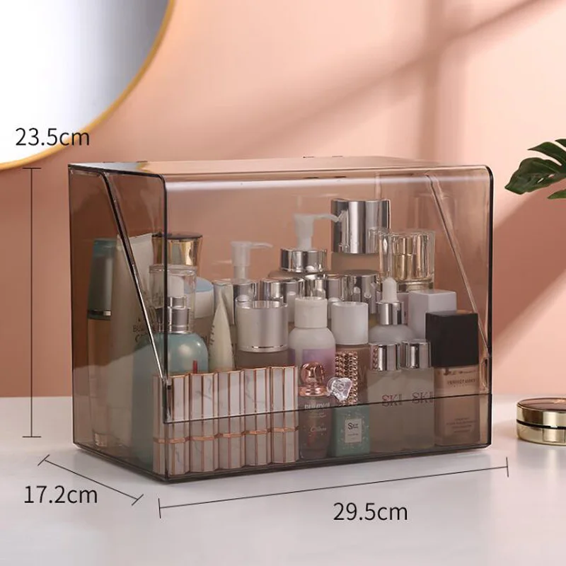 Вместительное пространство, снимающее давление на стол, и различные косметические средства можно легко хранить Humanized дизайн, передняя часть усилена, большая бутылка воды молока не ограничена размещением по желанию, и может быть легко размещена Чехол с откидной крышкой, прозрачная текстура, удобное открытие и закрытие, удобнее брать вещи Водонепроницаемый и пыленепроницаемый, его можно положить на умывальник, чтобы эффективно защитить косметику от влаги Спецификация: Материал: пластик Особенность 1: многослойное хранение, двустороннее вращение Особенность 2: водонепроницаемый и пыленепроницаемый, интегрированное формование Функция: косметика, хранение ювелирных изделий