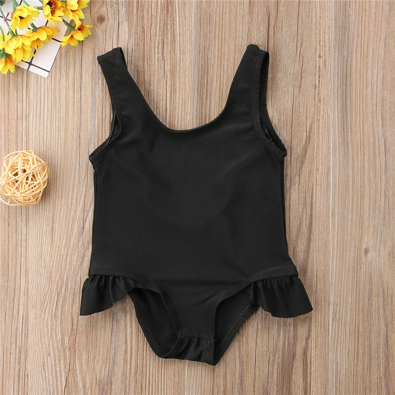 Купальник для девочек, милый черный купальник для новорожденных девочек, детский купальник-трикини с оборками, купальный костюм, бикини, купальный костюм, пляжная одежда