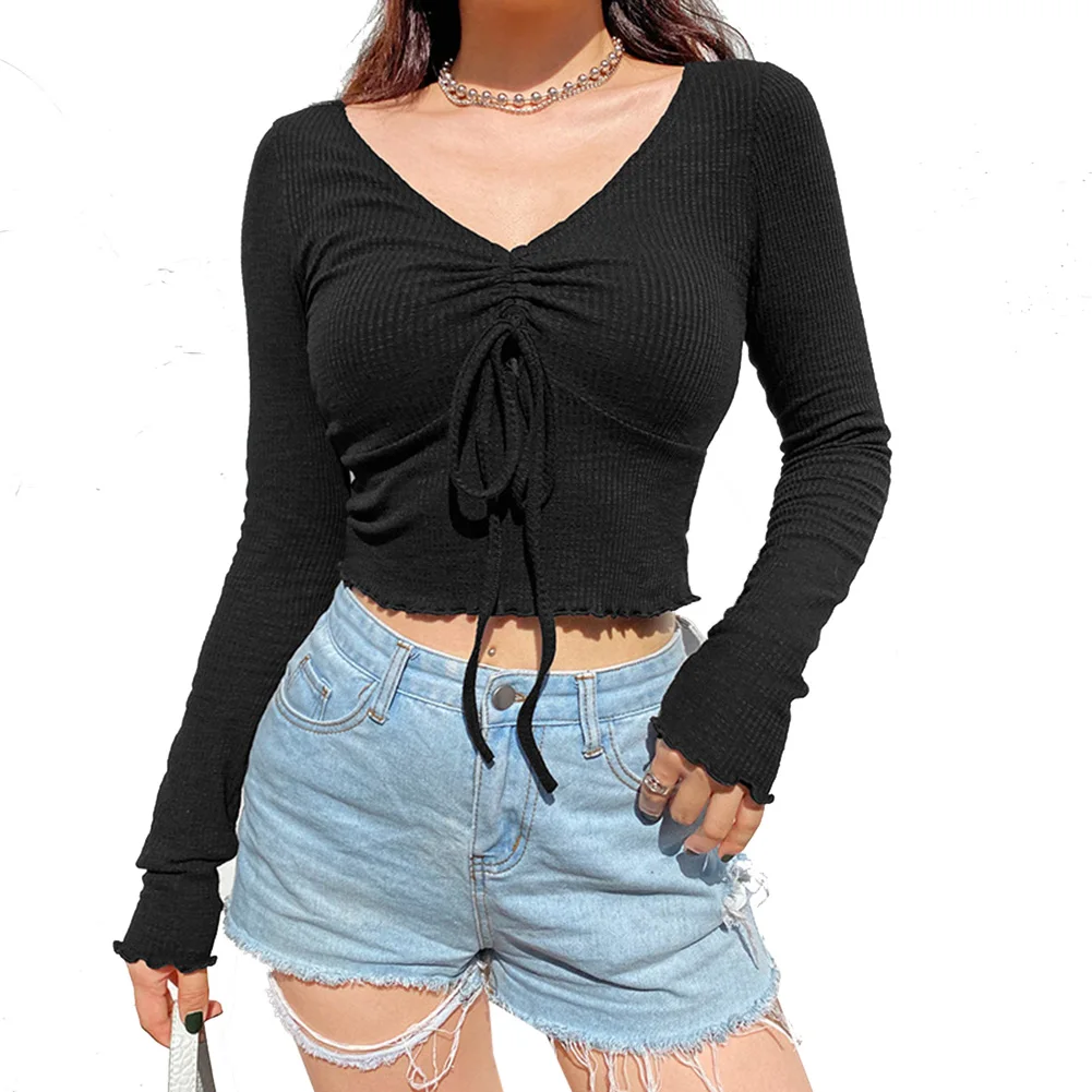 Модная трикотажная женская футболка Y2K 90s с длинным рукавом, эстетичный топ с оборками, белая рубашка для девушек, летняя Базовая футболка dollskiling14,02 долл. США