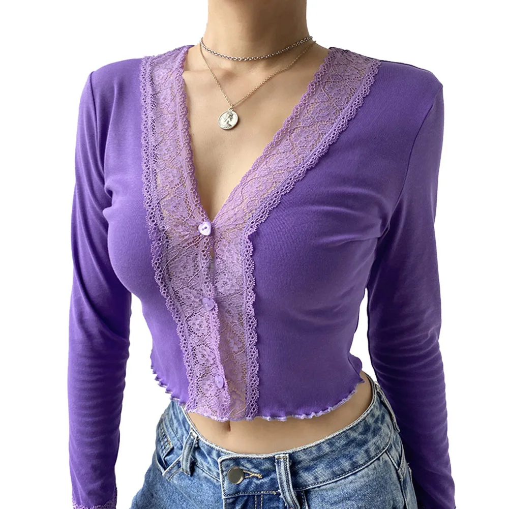 Женский кружевной кардиган, футболка с леопардовым принтом, укороченные вечерние топы с длинными рукавами, модная привлекательная облегающая футболка для осени17,03 долл. США