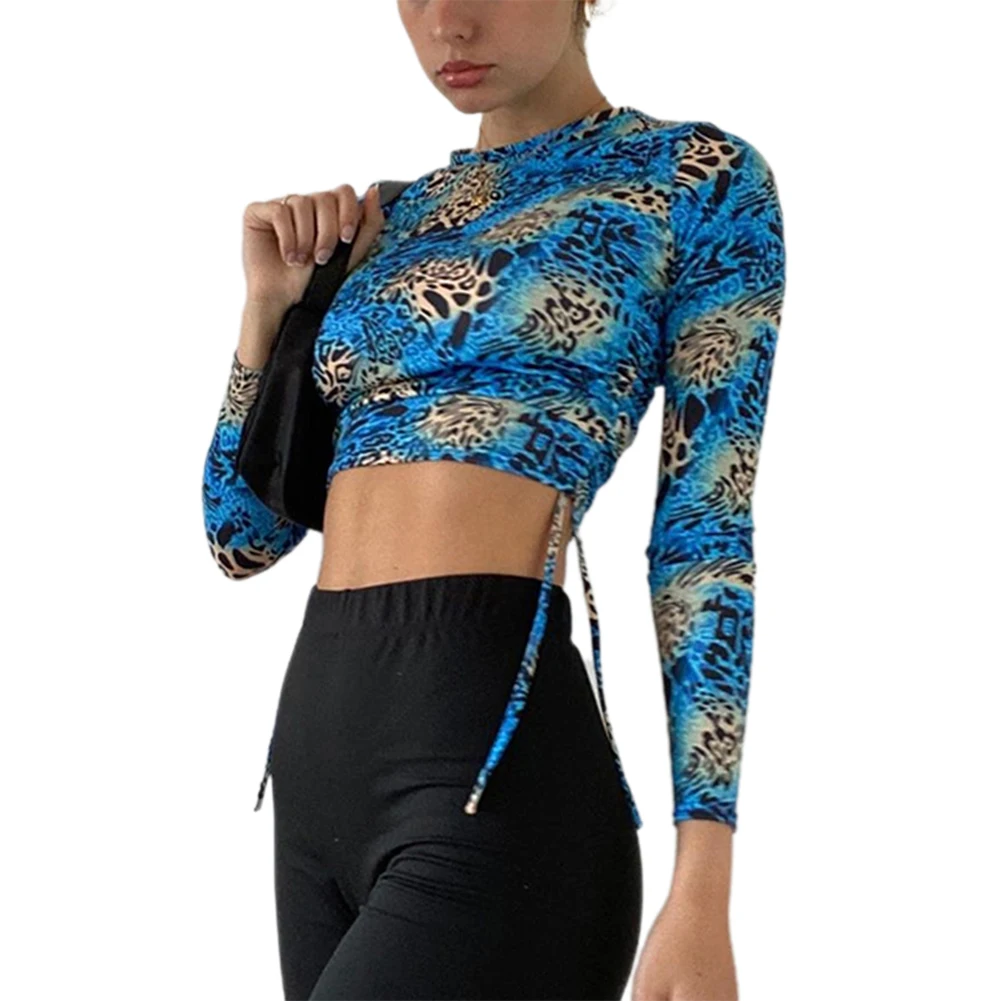 Женская леопардовая футболка с длинным рукавом, укороченный топ Y2K, топы, наряды, облегающая летняя футболка на пуговицах, уличная одежда, Осенний Топ16,01 долл. США
