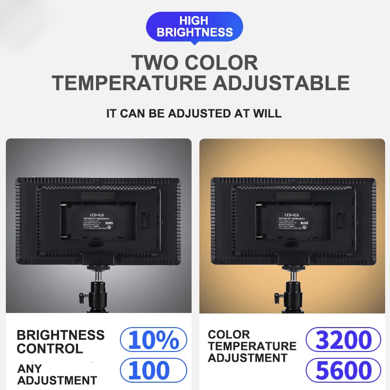 416 светодиодный светильник для видеосъемки, светильник для фотостудии, вспышка для камеры (черный), входная мощность: Li-battery NP-F550/F750/F960 series