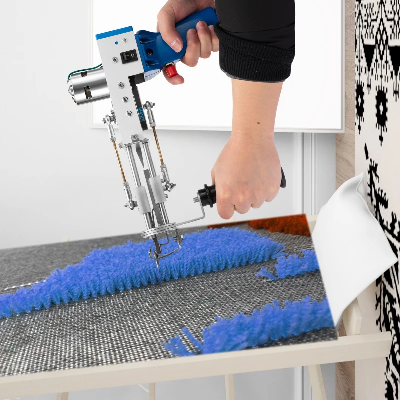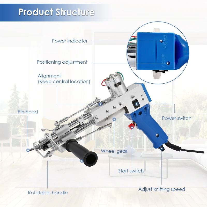 [Хорошая производительность]: Этот вязальный пистолет имеет очень широкий спектр применения. Он используется для плетения различных видов ковров. Скорость двигателя может достигать 2400 об/мин или выше для высокоскоростного перемещения, что повышает эффективность работы. В то же время он тише и не будет издавать громкий шум и доступны практически все нити, это передовое специальное оборудование, которое может значительно повысить эффективность работы в современном производстве.