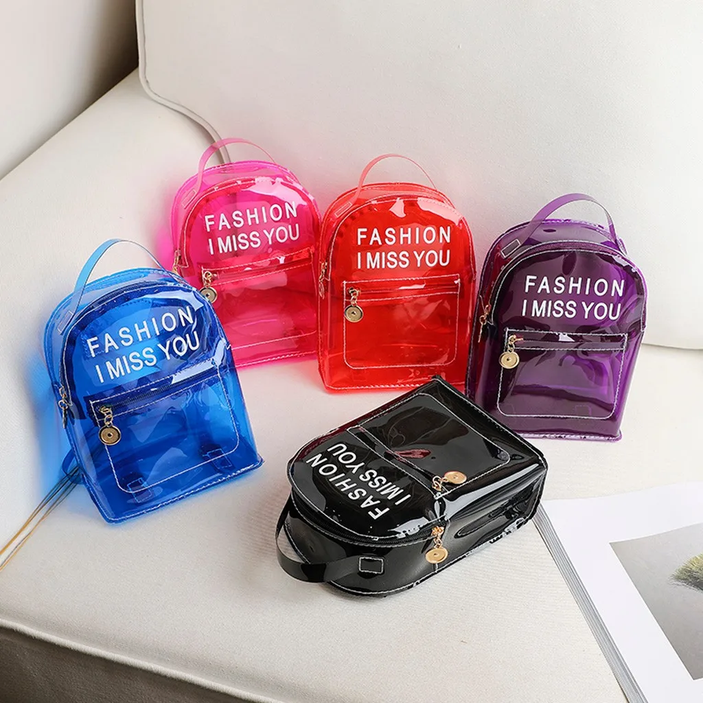 Модная Женская Студенческая пляжная однотонная прозрачная сумка рюкзак сумка через плечо