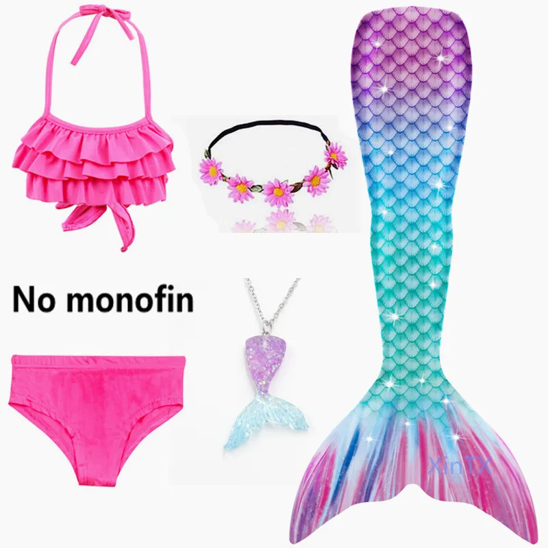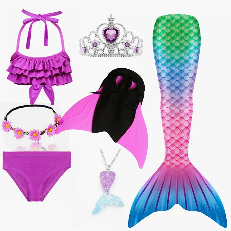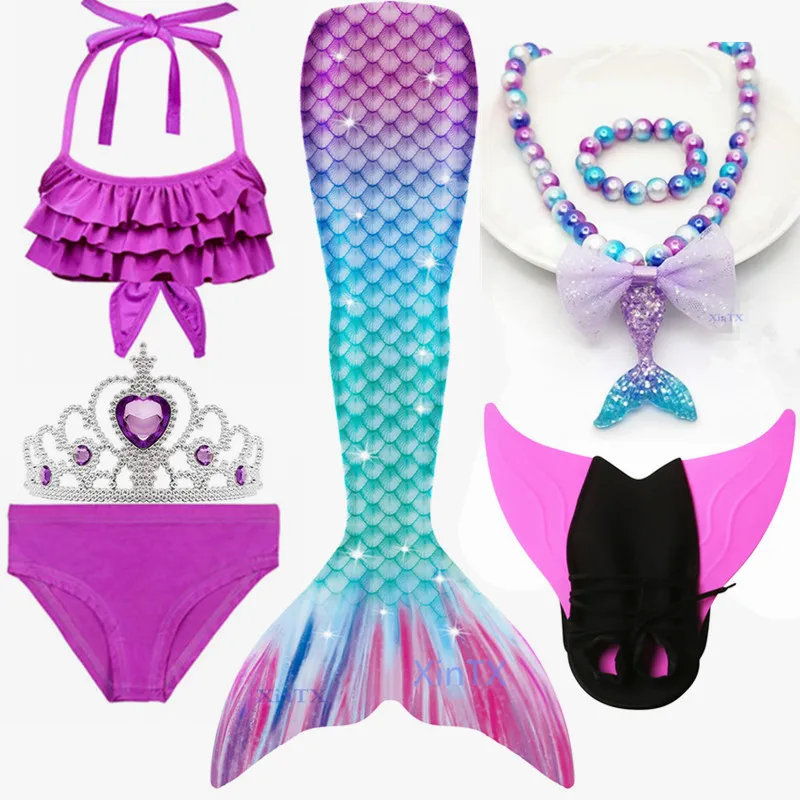 3 шт. купальник + 1 * монофин + 1 * корона + 1 * ожерелье + очки (всего 7 шт.)