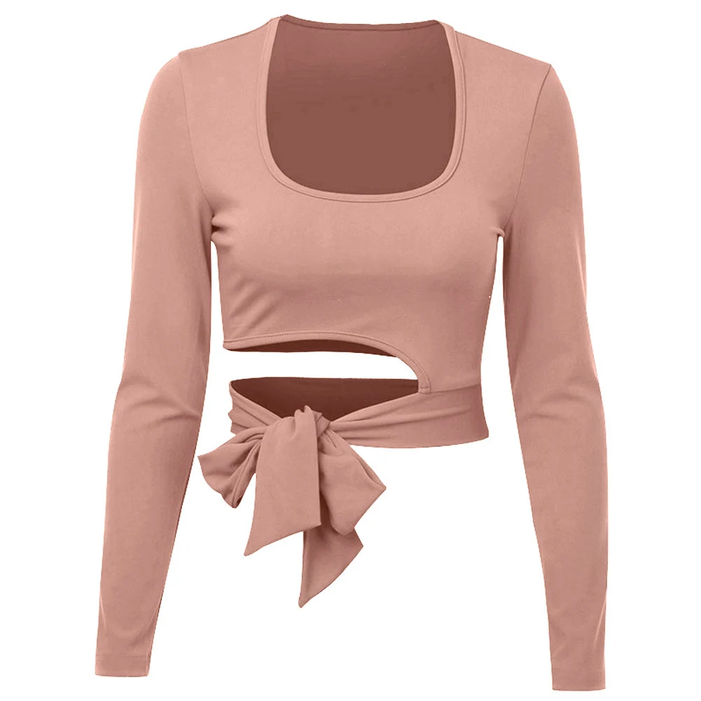 Женская Повседневная футболка с круглым вырезом и длинным рукавом
